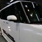 シャイニングホワイトパール!施工はボディには完全無機質のクォーツ(親水性)/ホイールコーティング