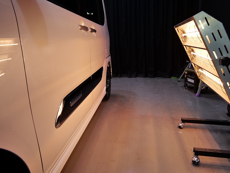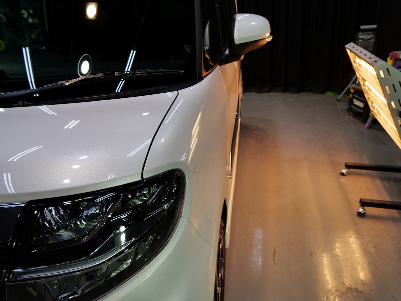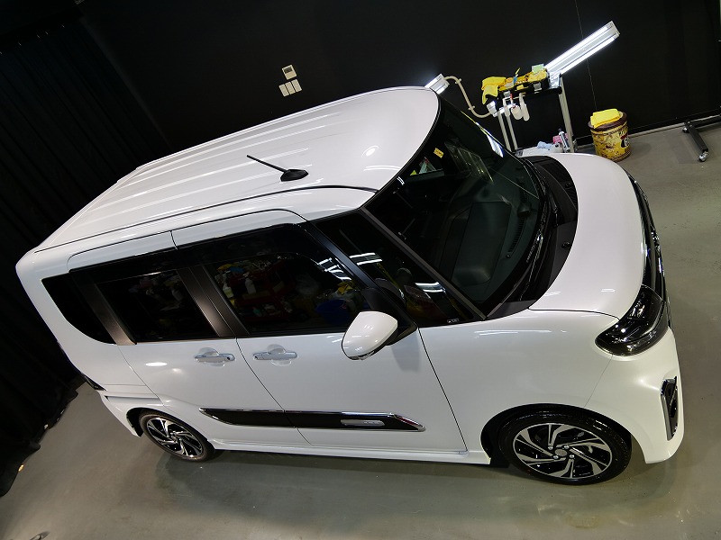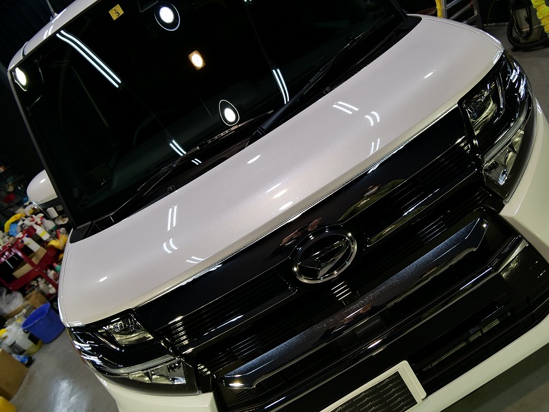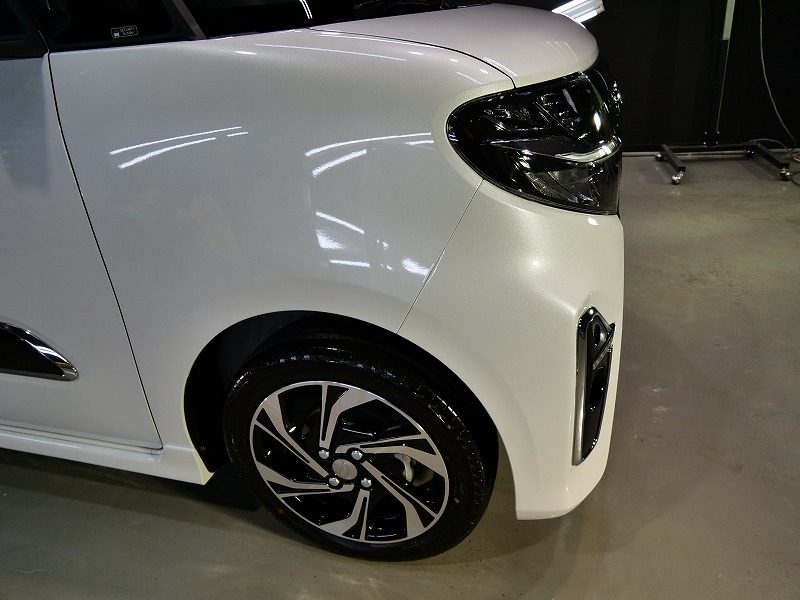 シャイニングホワイトパール!施工はボディには完全無機質のクォーツ(親水性)/ホイールコーティング