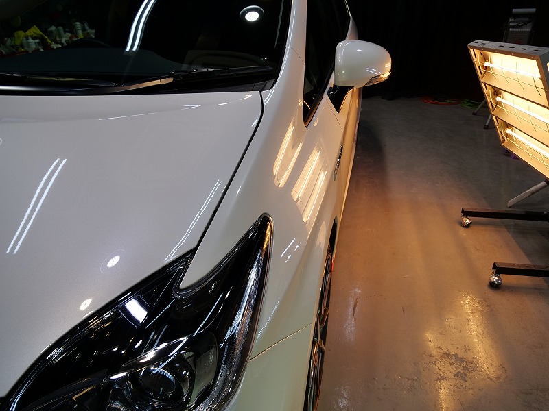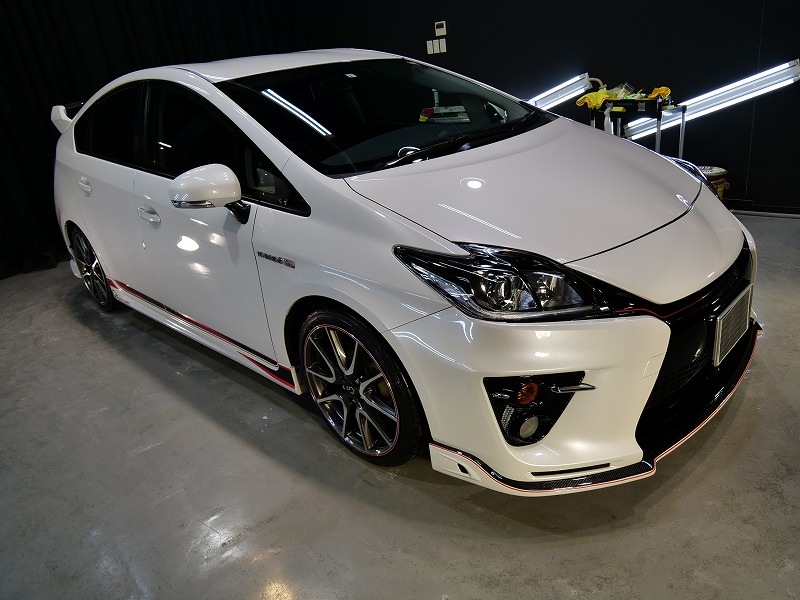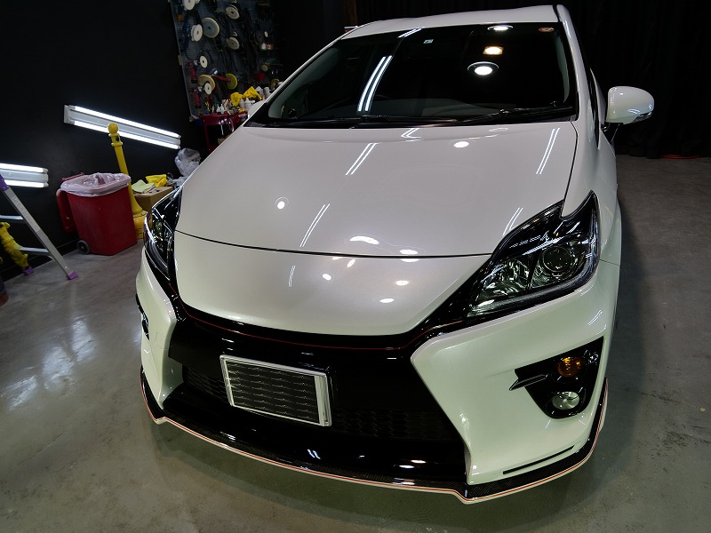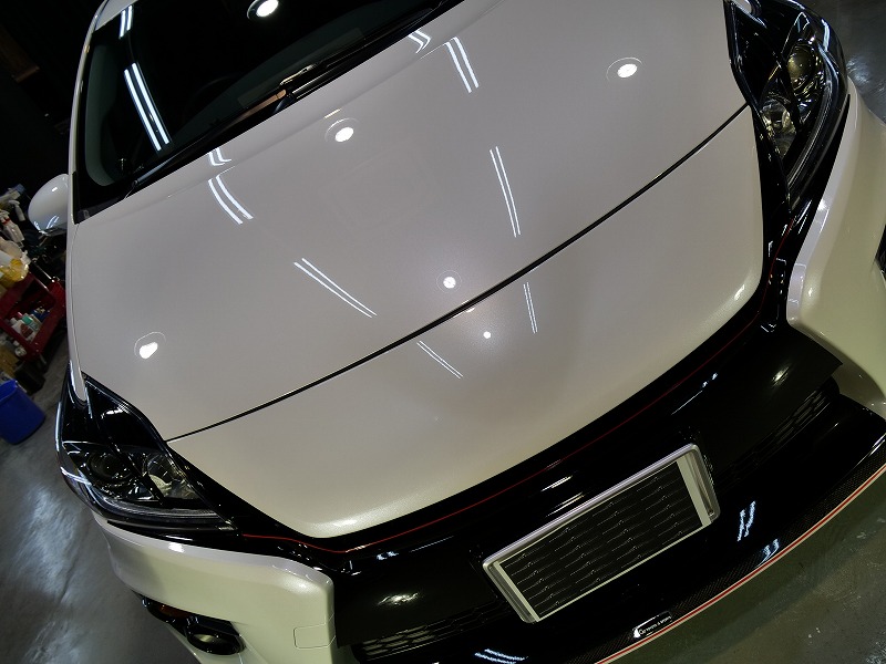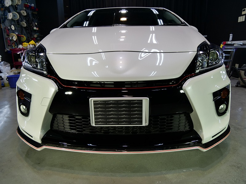 パールクリスタルシャイン!施工はボディにはハイモースコートザ・グロウ/ホイールコーティング/フロント