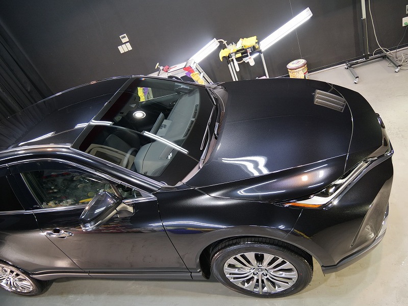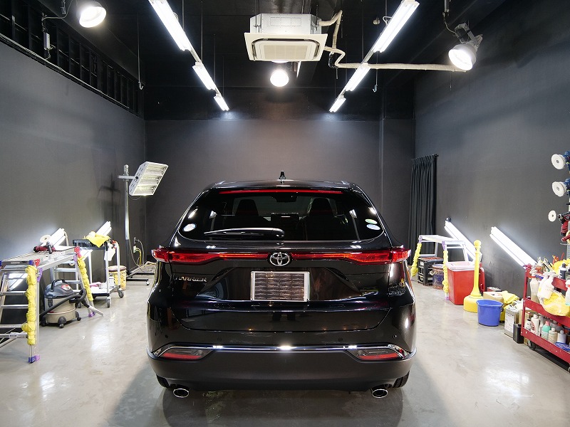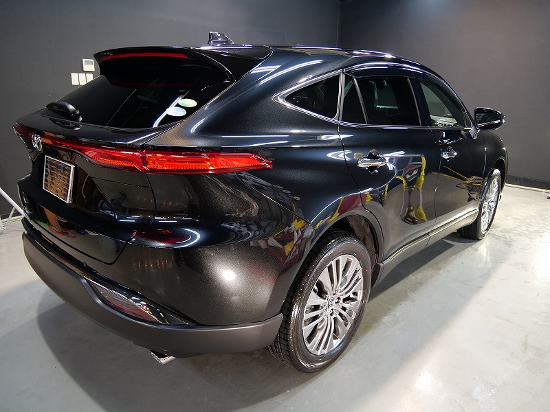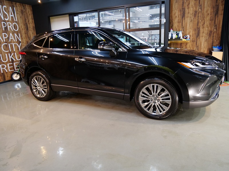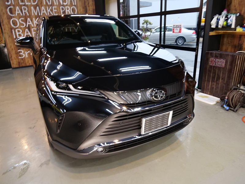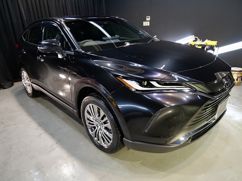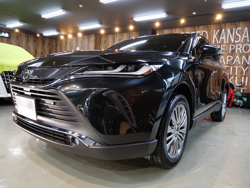 大阪府吹田市よりトヨタハリアーのご入庫です!ボディカラーはプレシャスブラックパール!施工はボディ