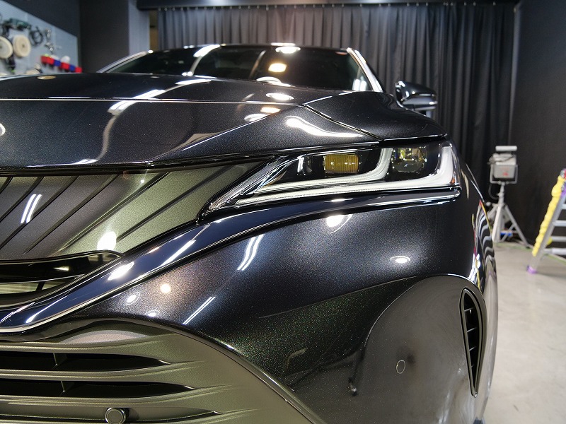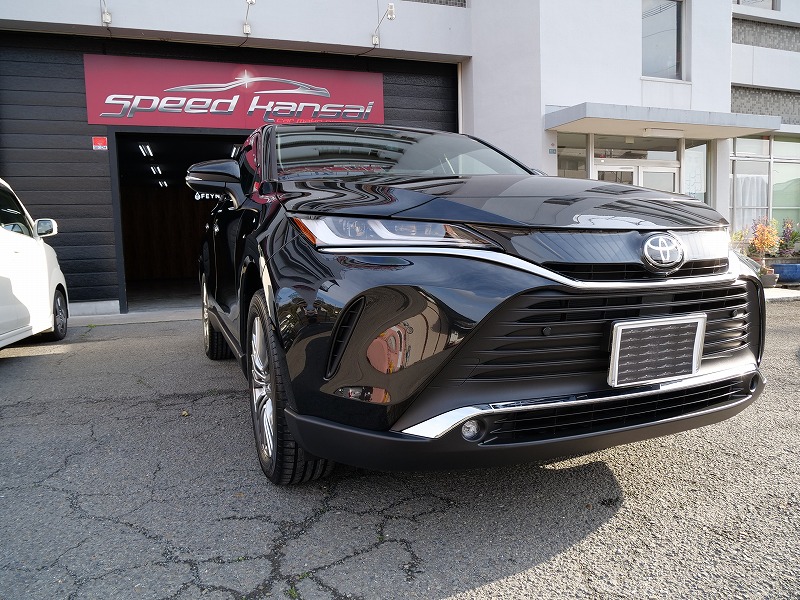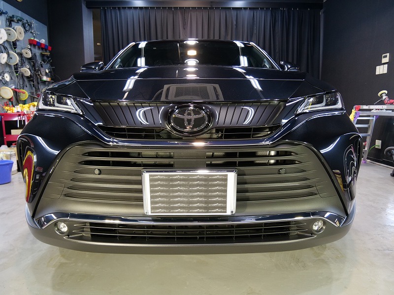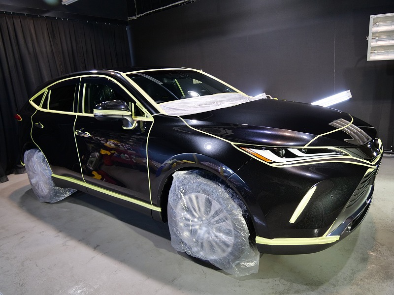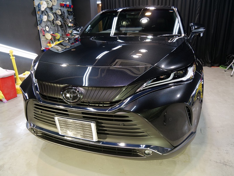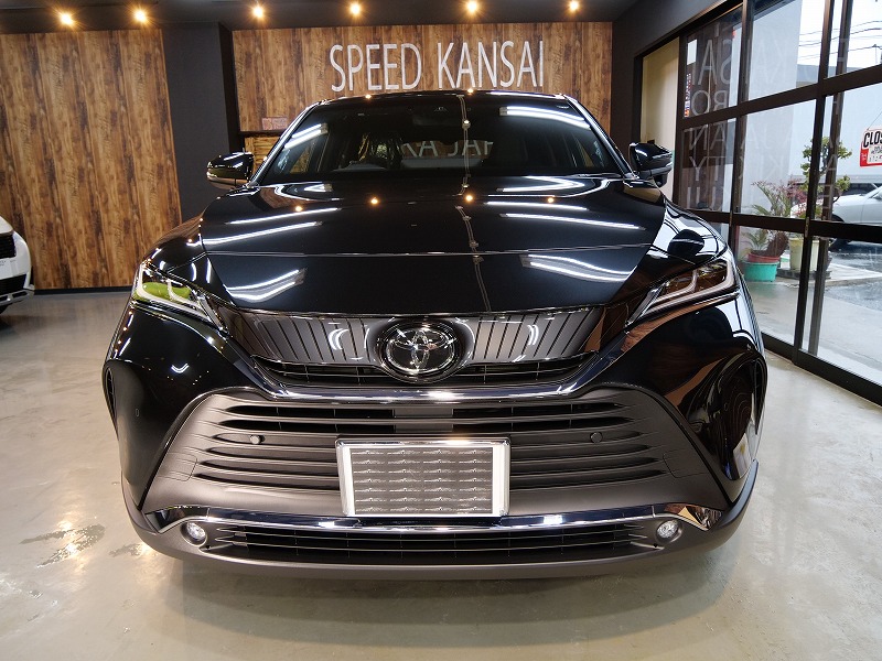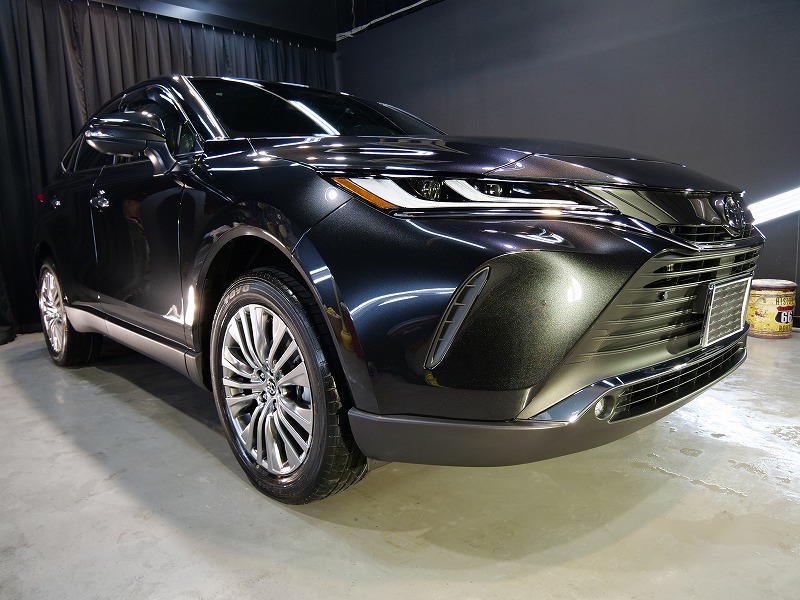 大阪府吹田市よりトヨタハリアーのご入庫です!ボディカラーはプレシャスブラックパール!施工はボディ