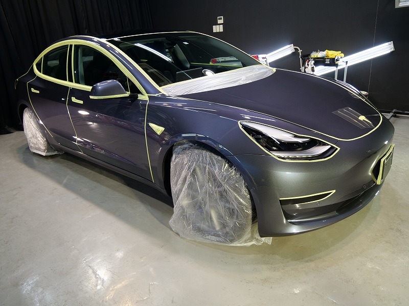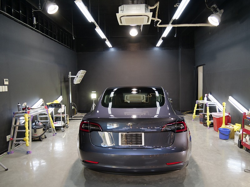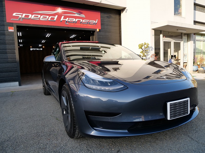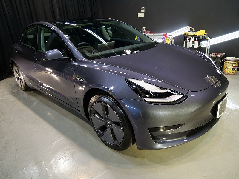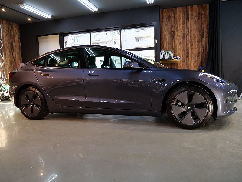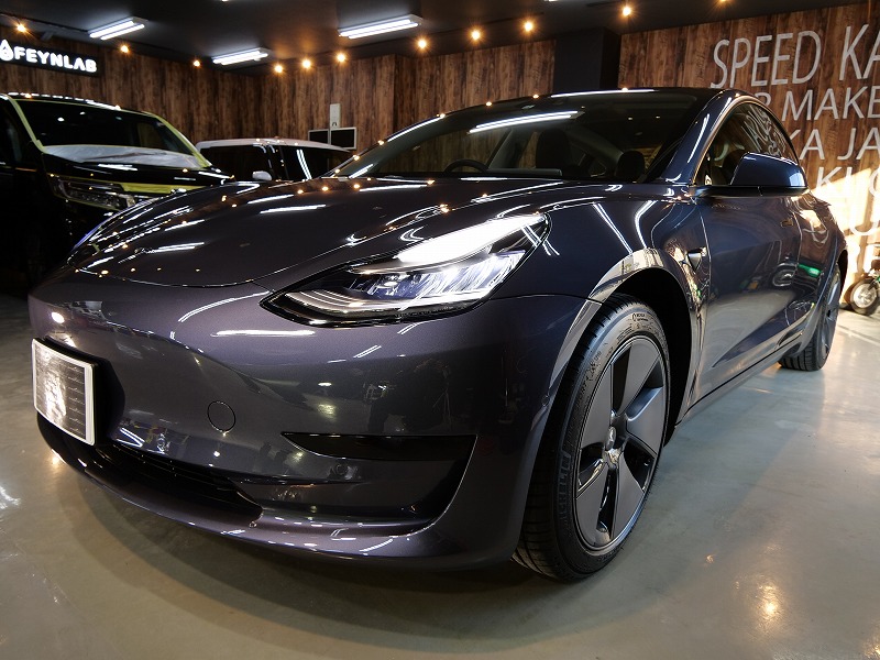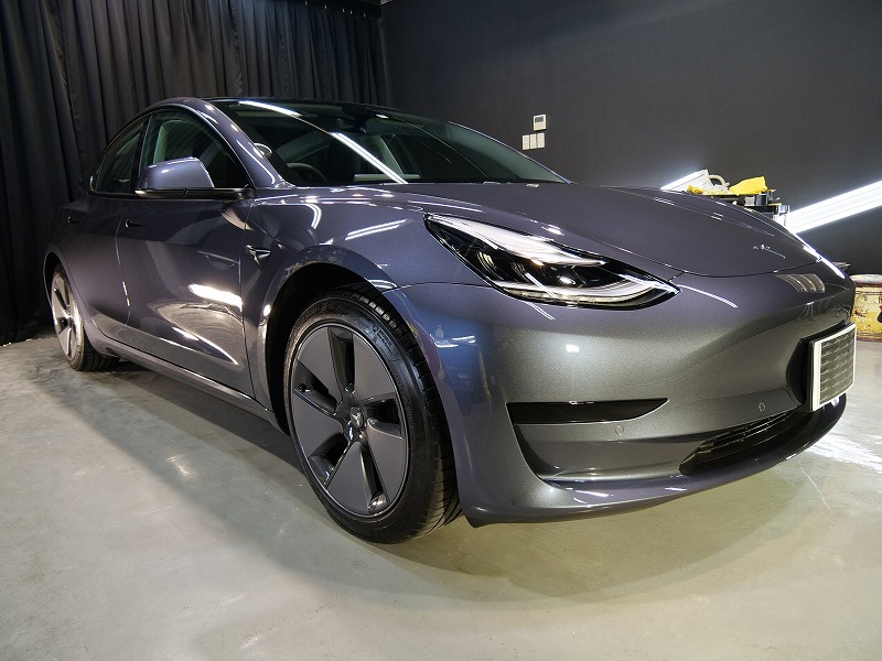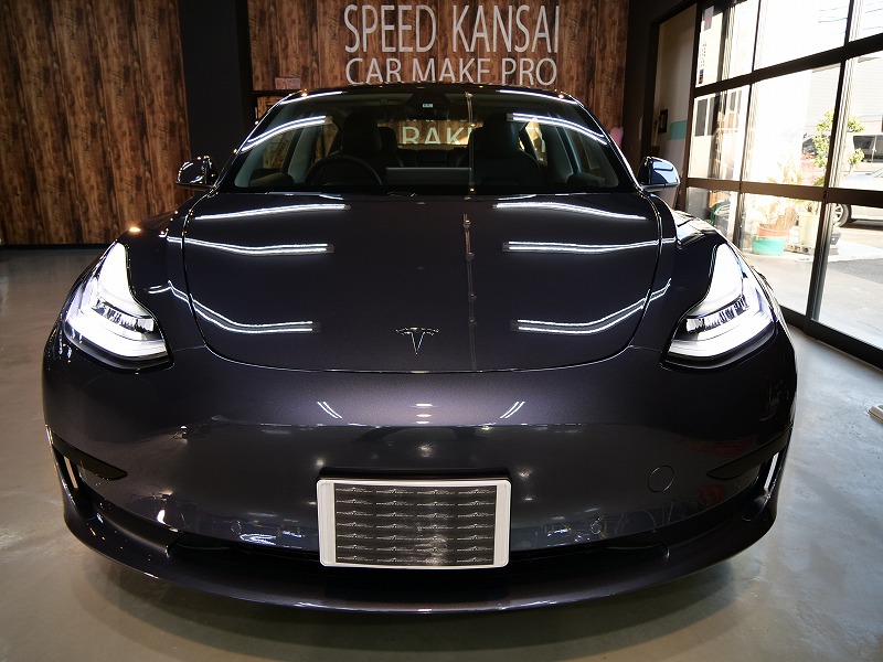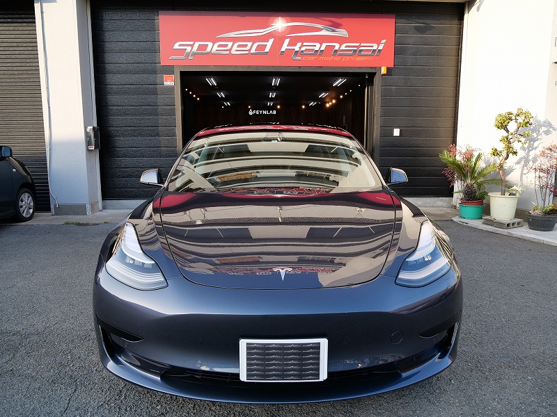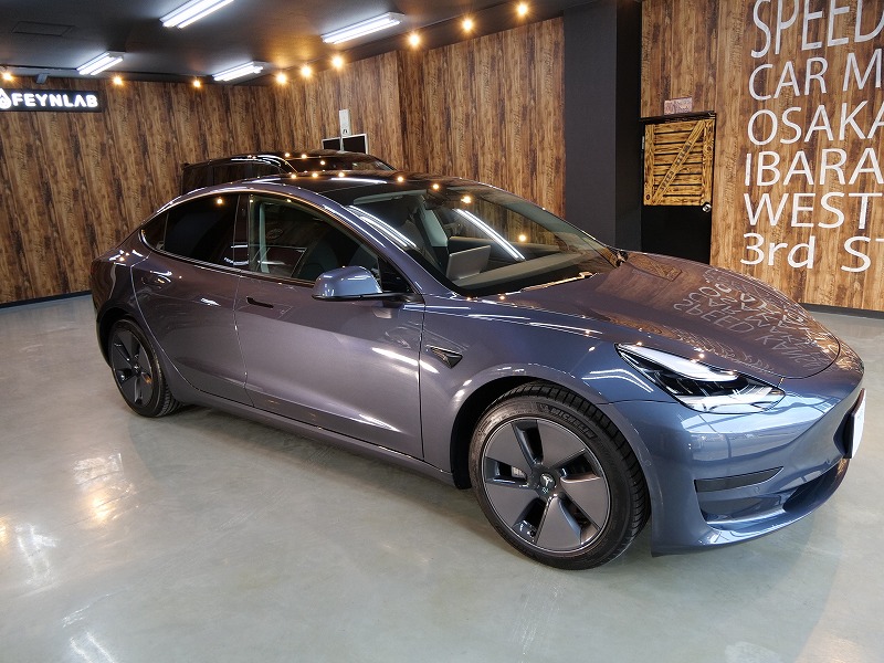 大阪府茨木市よりテスラ モデル3のご入庫です!ボディカラーはミッドナイトシルバーメタリック!施工は