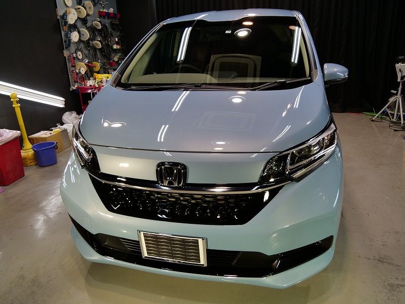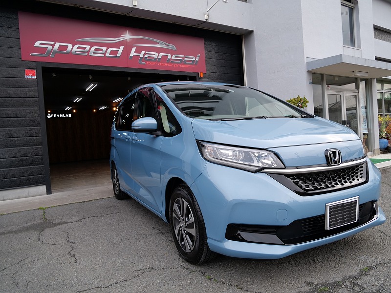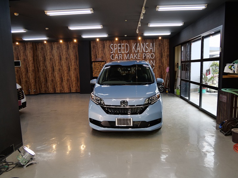 大阪市よりホンダ フリード+のご入庫です!ボディカラーはシーグラスブルーパール!施工はボディには