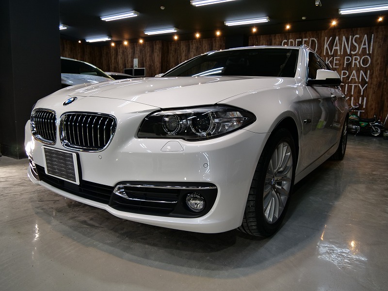 大阪市淀川区よりBMW 523d ツーリングのご入庫です!ボディカラーはミネラルホワイトメタリック!