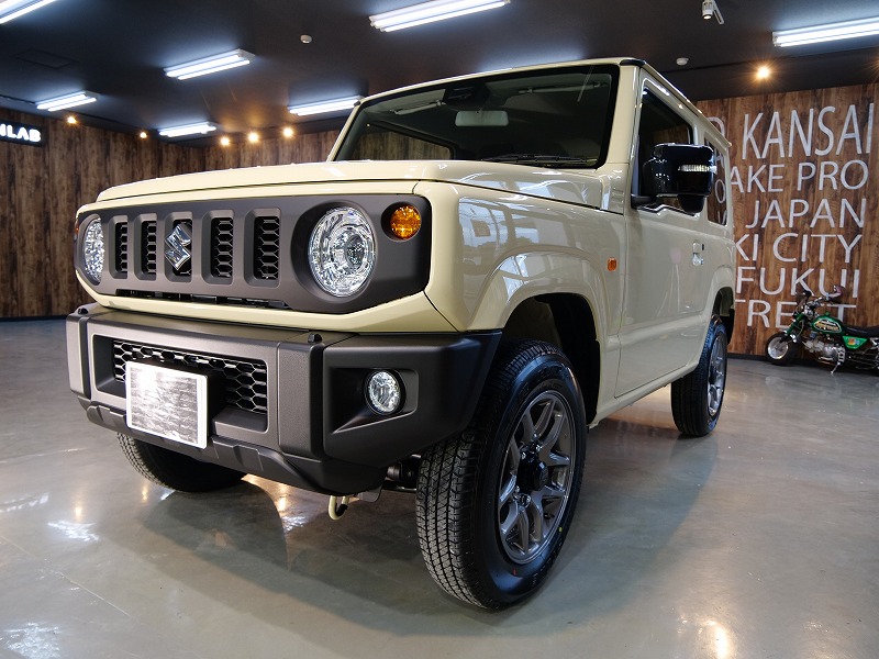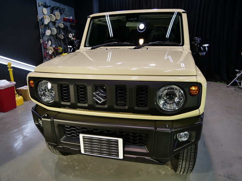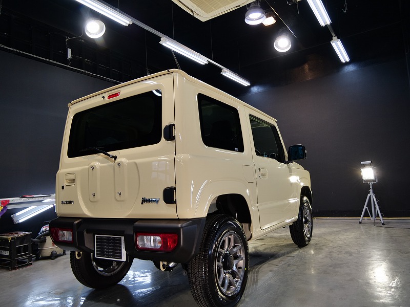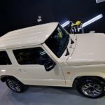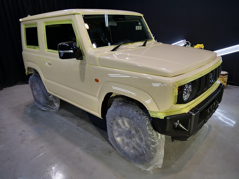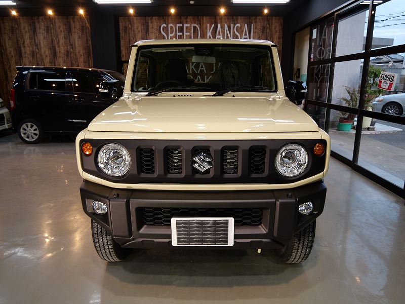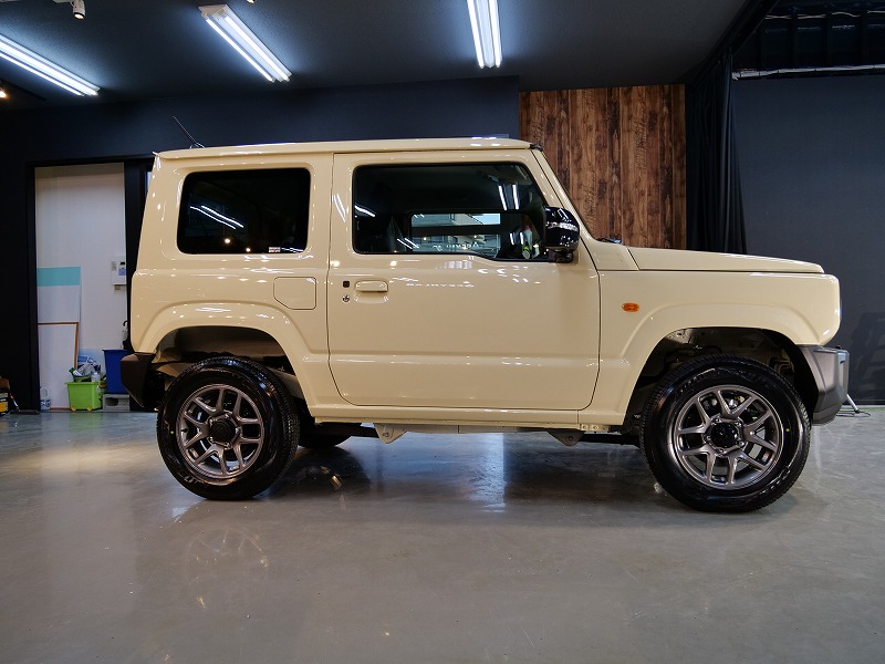 大阪府吹田市よりスズキ ジムニーのご入庫です!ボディカラーはシフォンアイボリー!施工はボディには