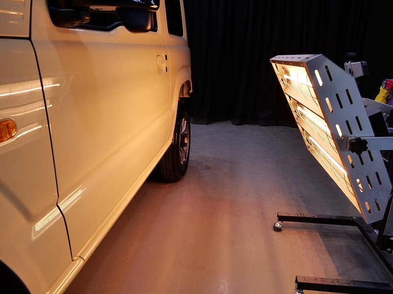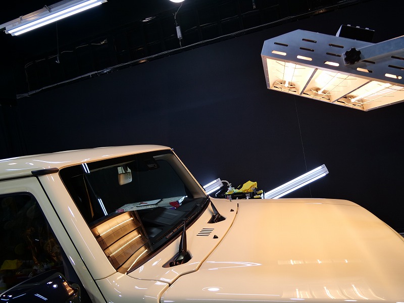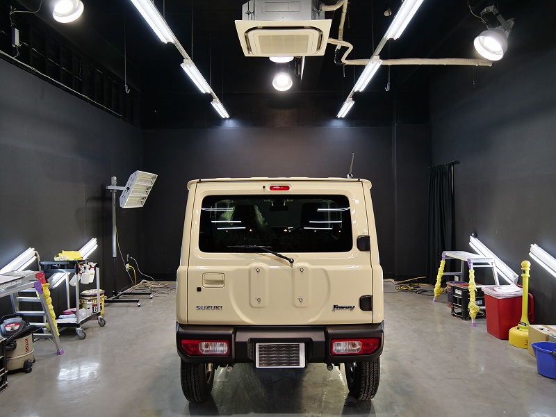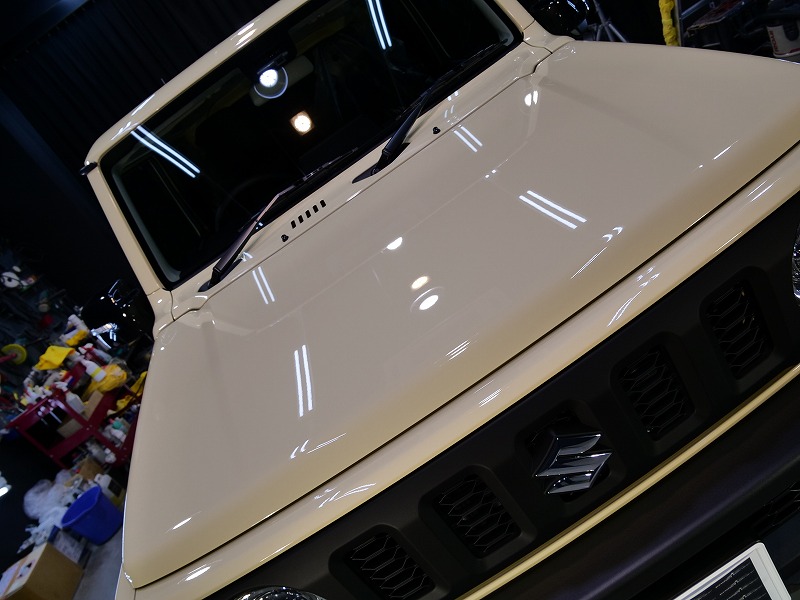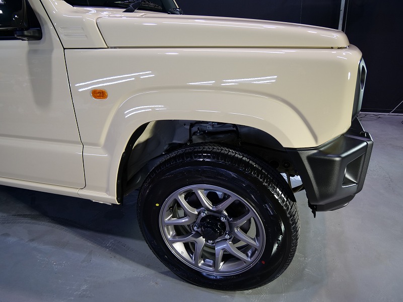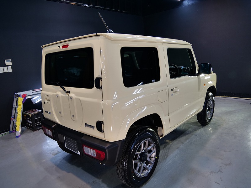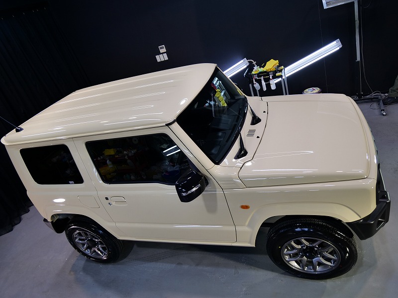 大阪府吹田市よりスズキ ジムニーのご入庫です!ボディカラーはシフォンアイボリー!施工はボディには