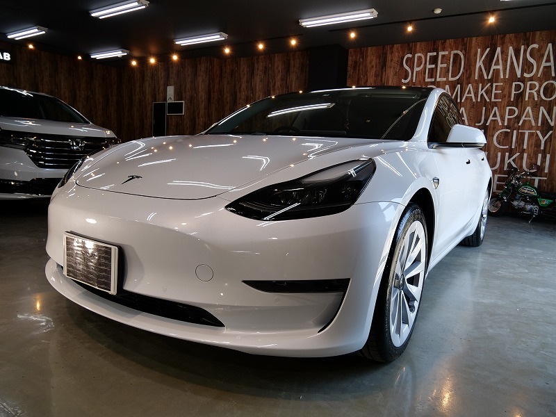 兵庫県芦屋市より当店のお客様からのご紹介でテスラ モデル3をお持ち下さいました!ボディカラーはパール