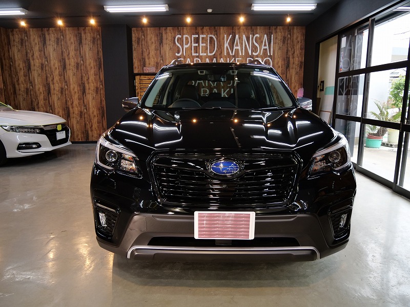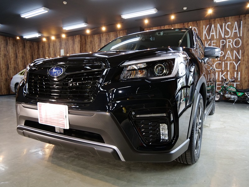 大阪府豊中市より新型スバルフォレスターのご入庫です!ボディカラーはクリスタルブラックシリカ!