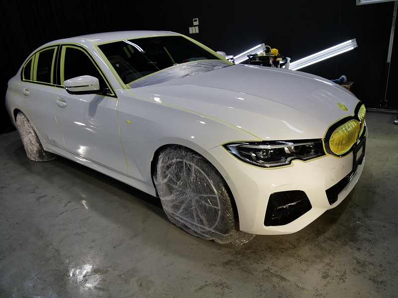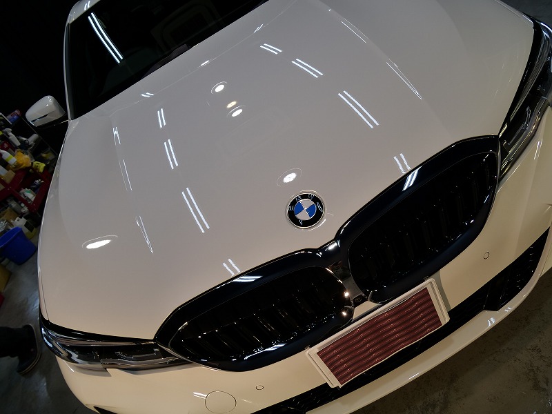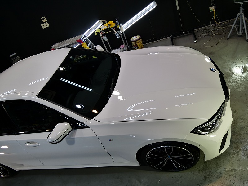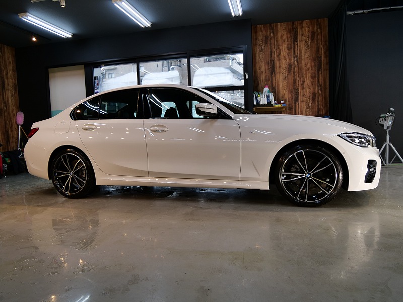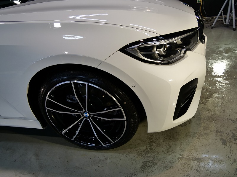 アルピンホワイト(ソリッド)!施工はボディには完全無機質のクォーツ(親水性)/ホイールコーティング/