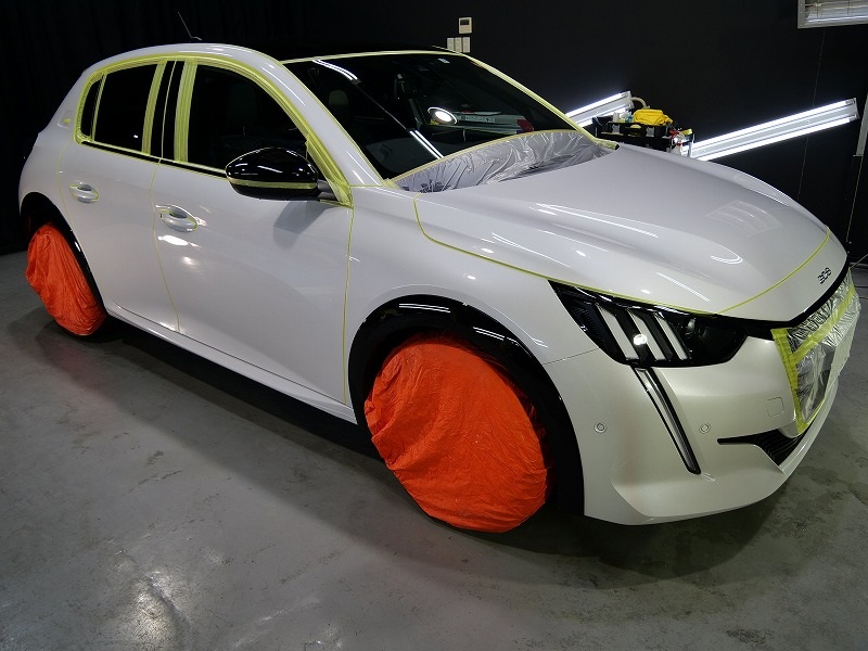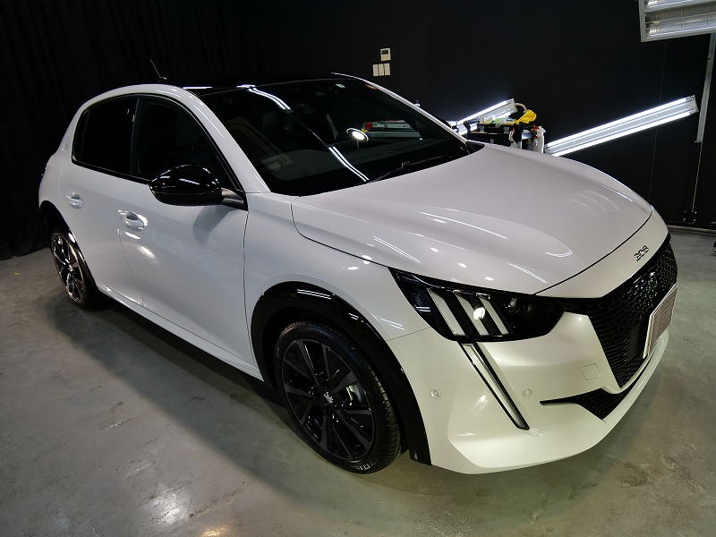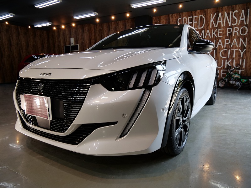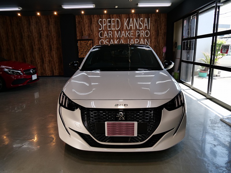大阪府摂津市よりプジョー208GTのご入庫です!ボディカラーはパールホワイト!施工はボディには完全
