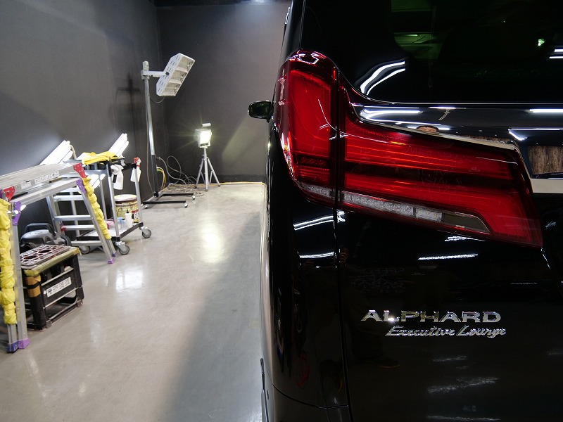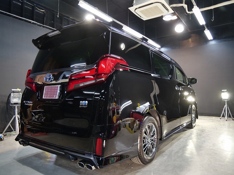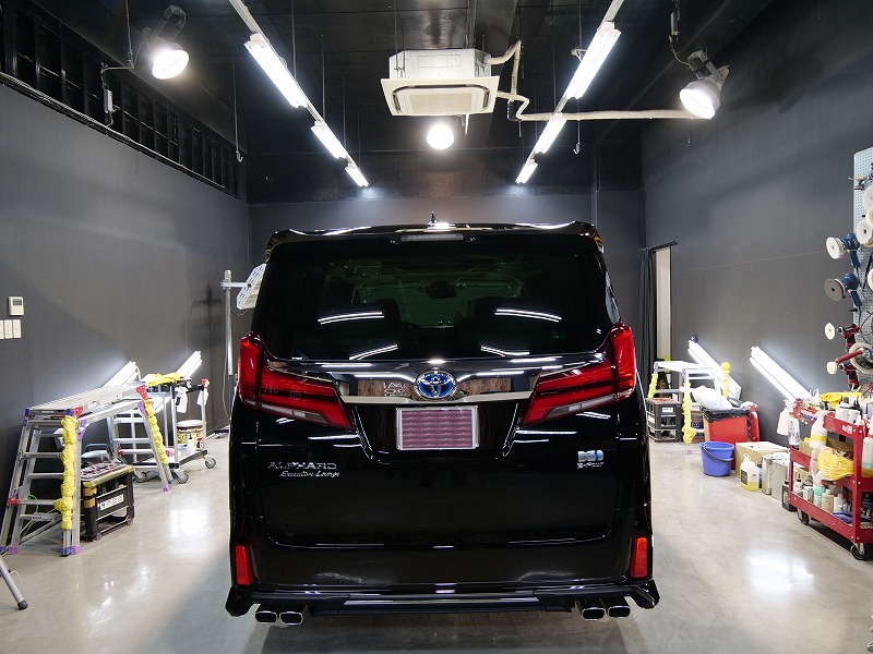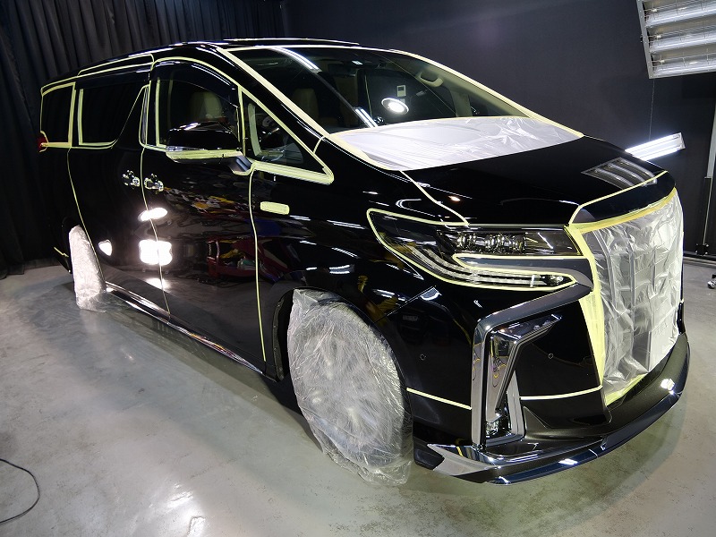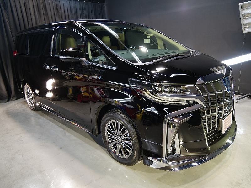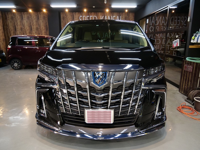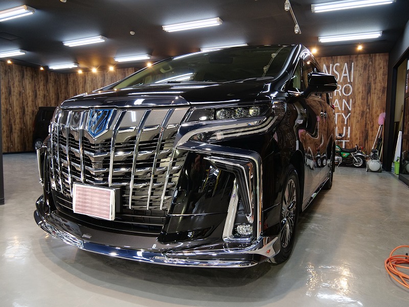 大阪府吹田市よりトヨタ アルファードのご入庫です!ボディカラーはトヨタのブラック202!施工はボディ