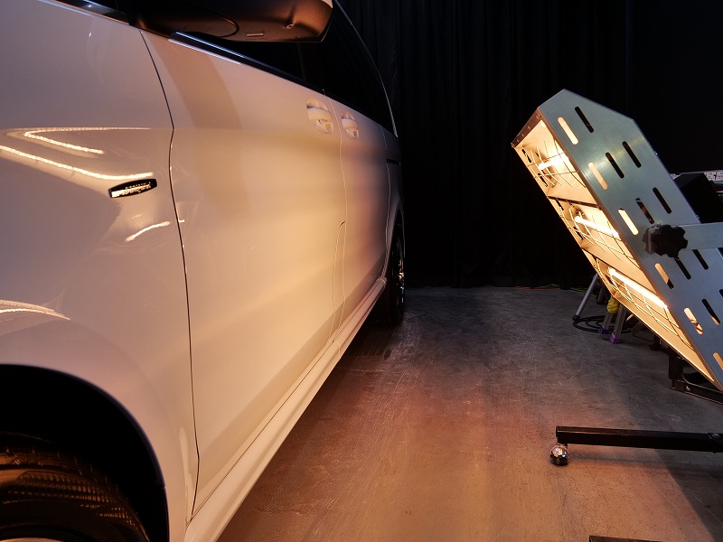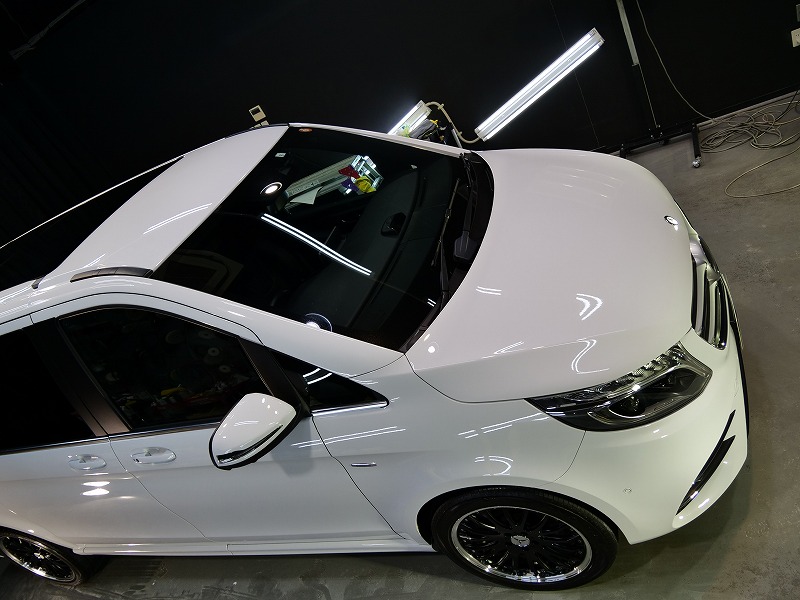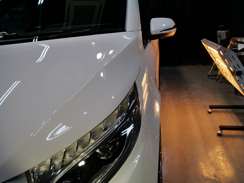 カラーはロッククリスタルホワイトメタリック!施工はボディにはハイモースコートザ・ネオ(超撥水)