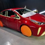 大阪府吹田市よりトヨタ プリウスのご入庫です!ボディカラーはエモーショナルレッドⅡ 施工はボディには