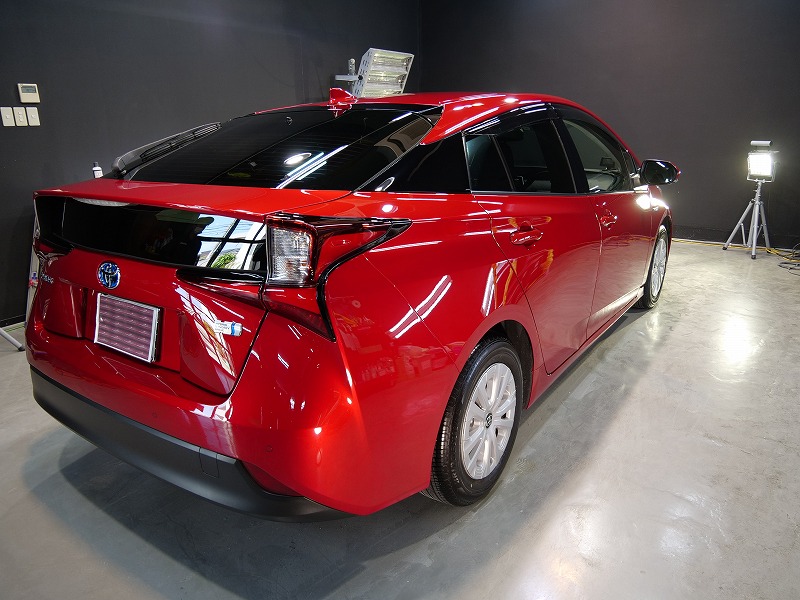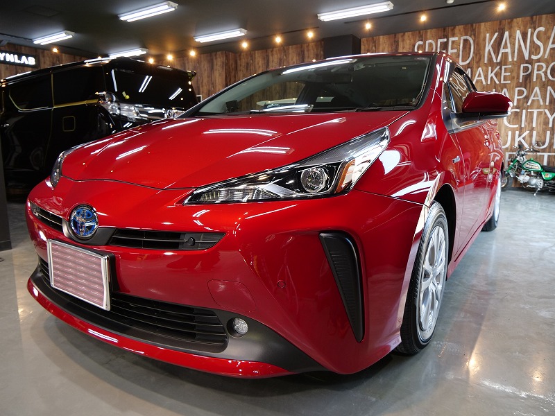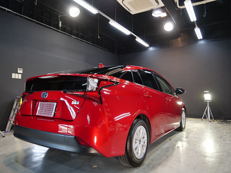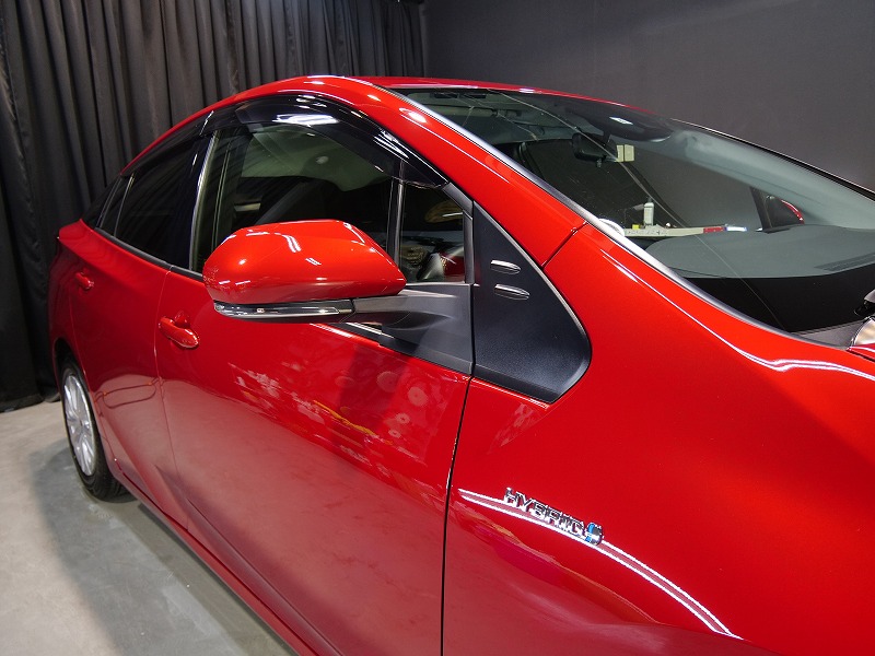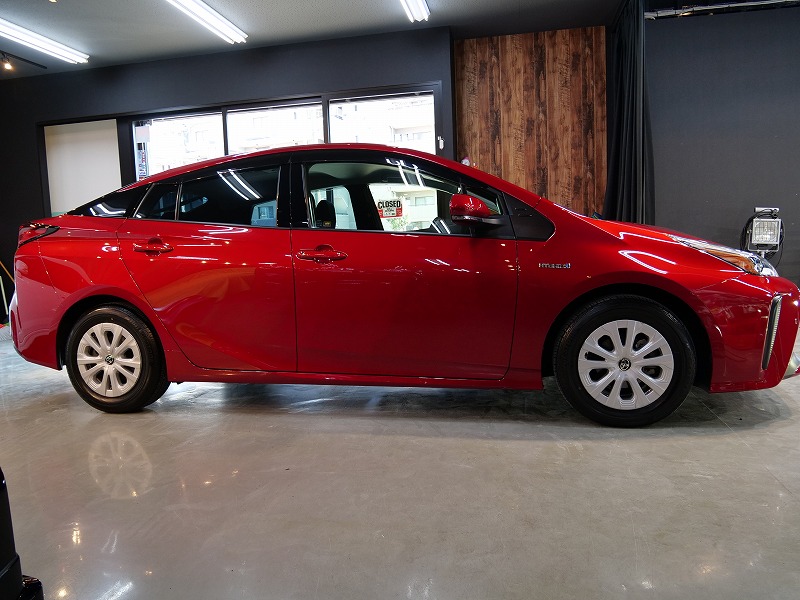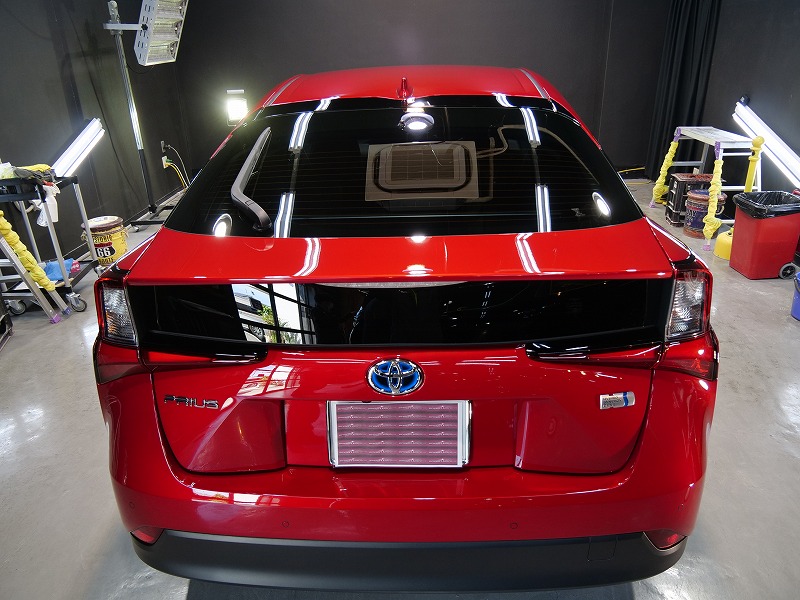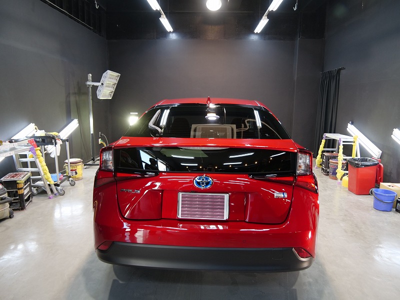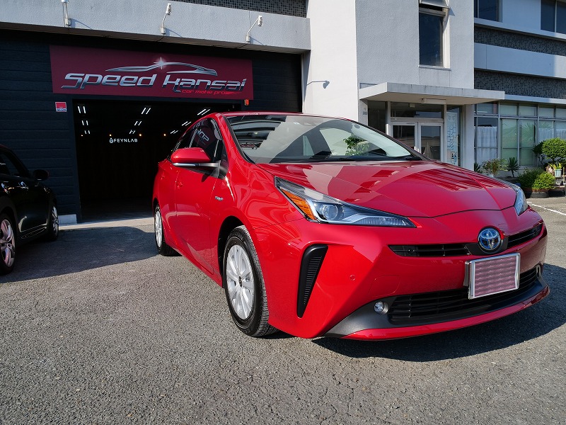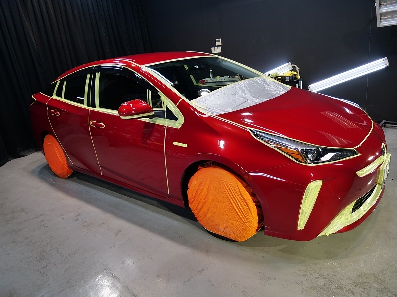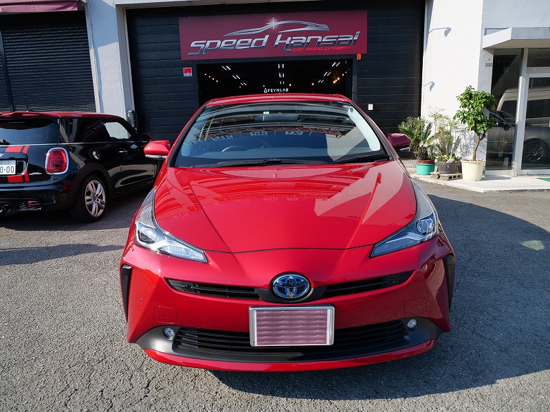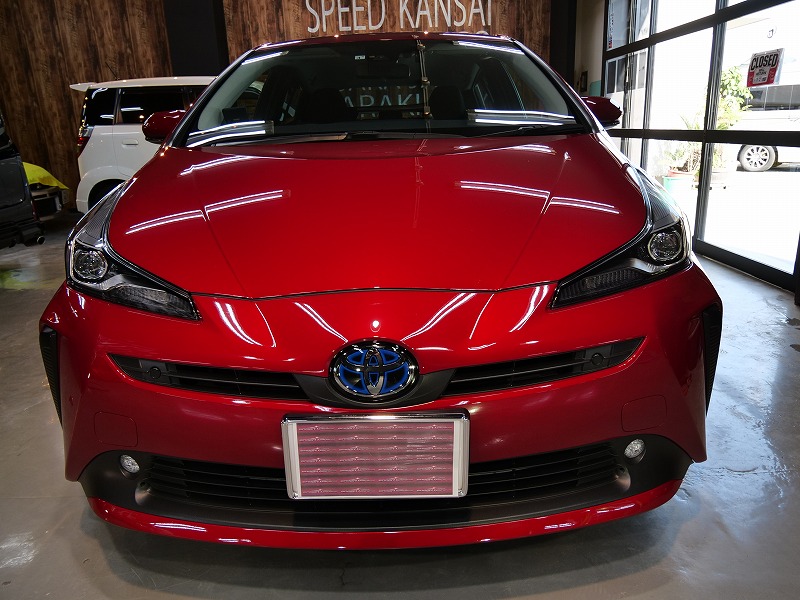大阪府吹田市よりトヨタ プリウスのご入庫です!ボディカラーはエモーショナルレッドⅡ 施工はボディには