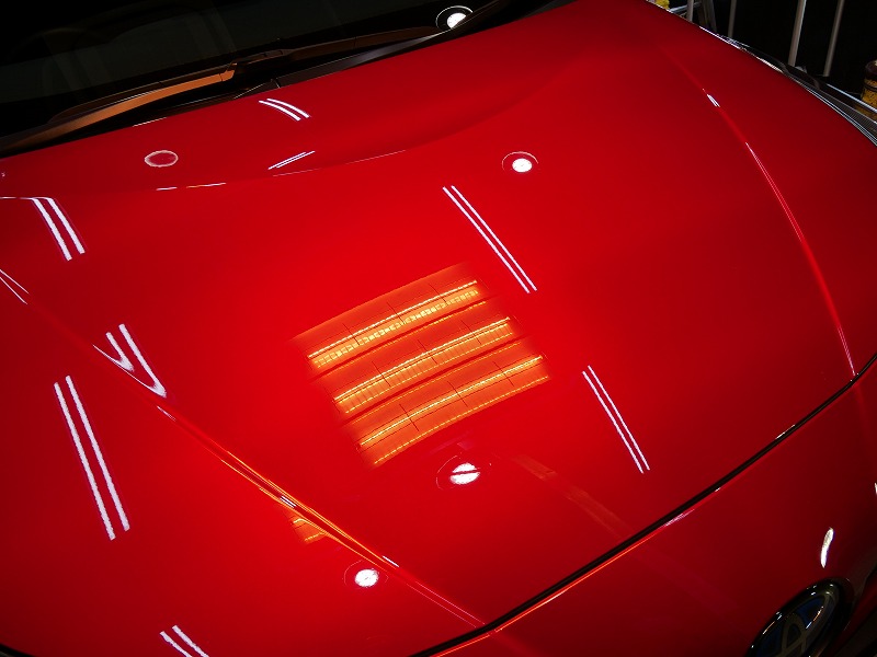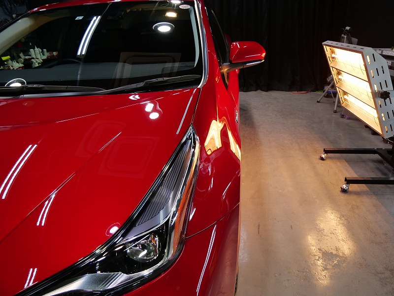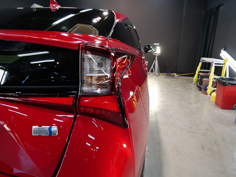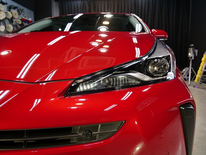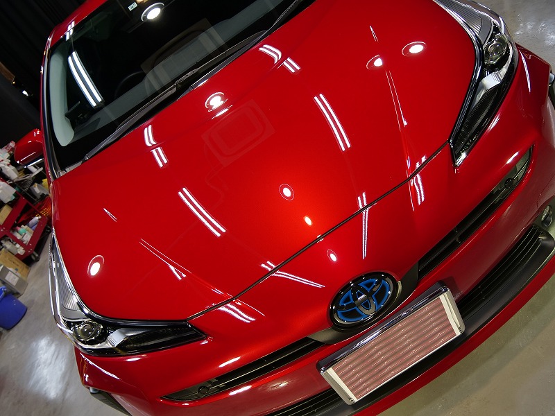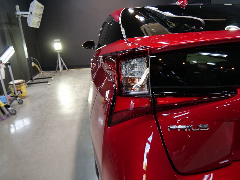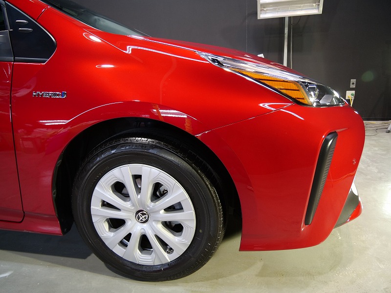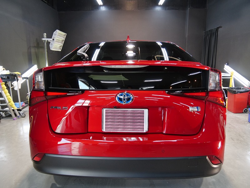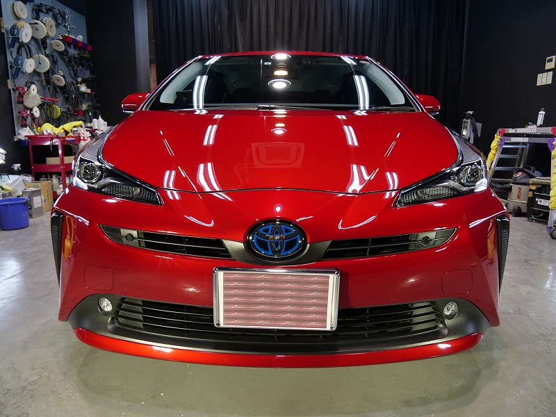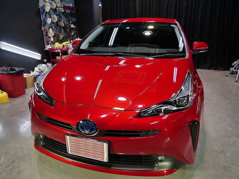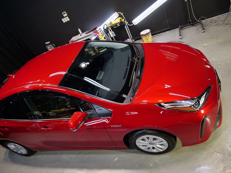 大阪府吹田市よりトヨタ プリウスのご入庫です!ボディカラーはエモーショナルレッドⅡ 施工はボディには
