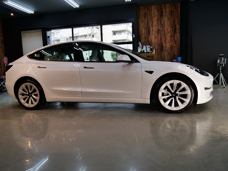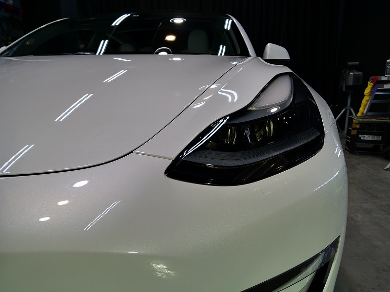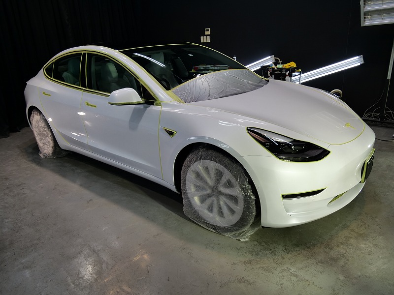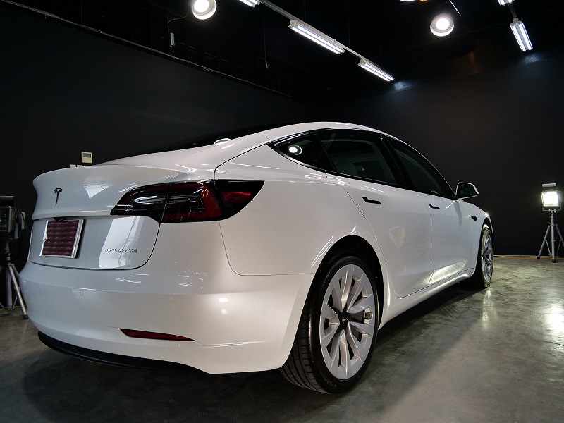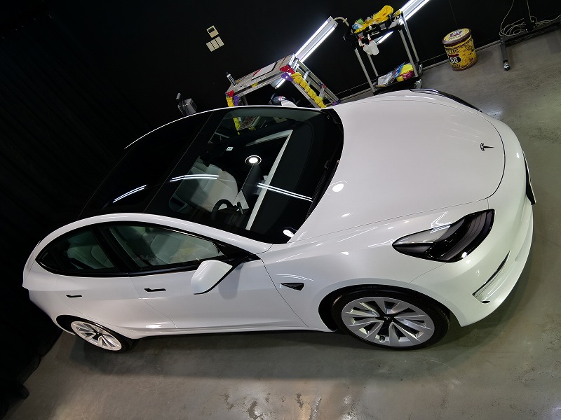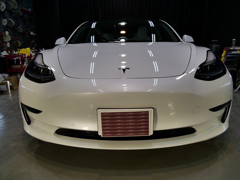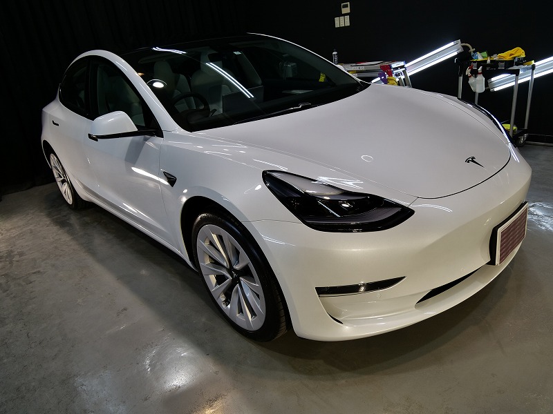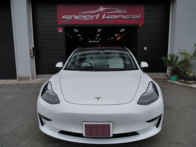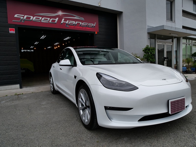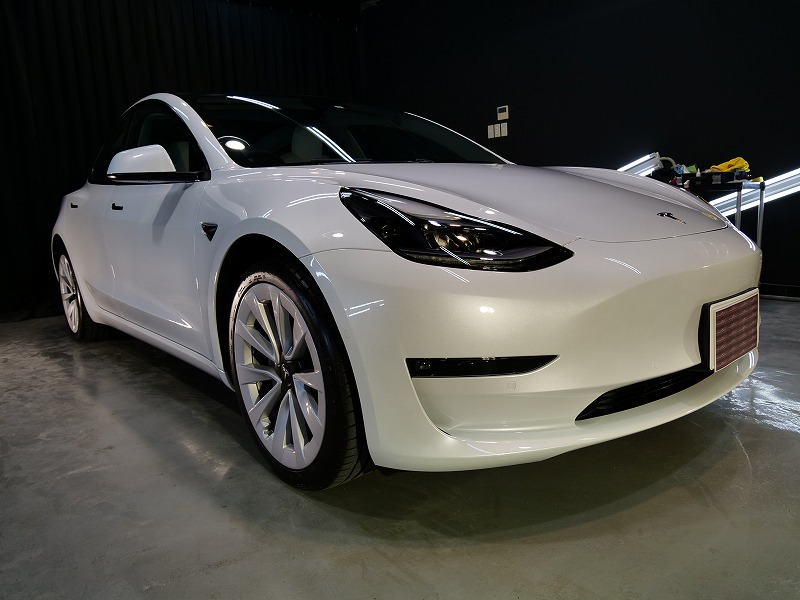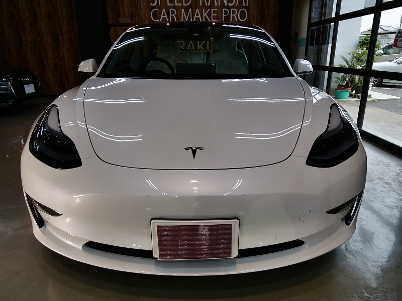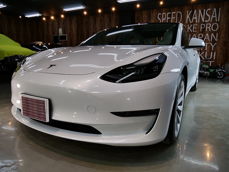 大阪府八尾市より人気のテスラモデル3のご入庫です!ボディカラーはパールホワイトマルチコート!施工は