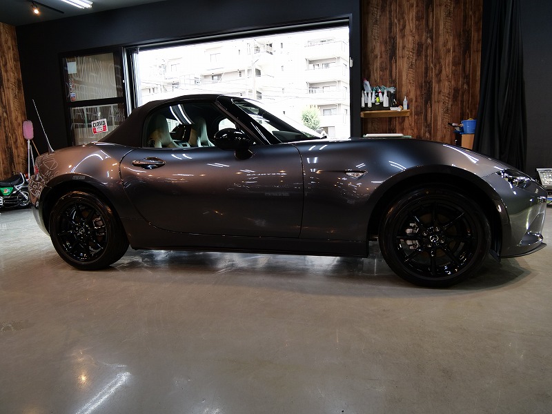 大阪府高槻市よりマツダ ロードスターのご入庫です!ボディカラーはマシーングレー!施工はボディには