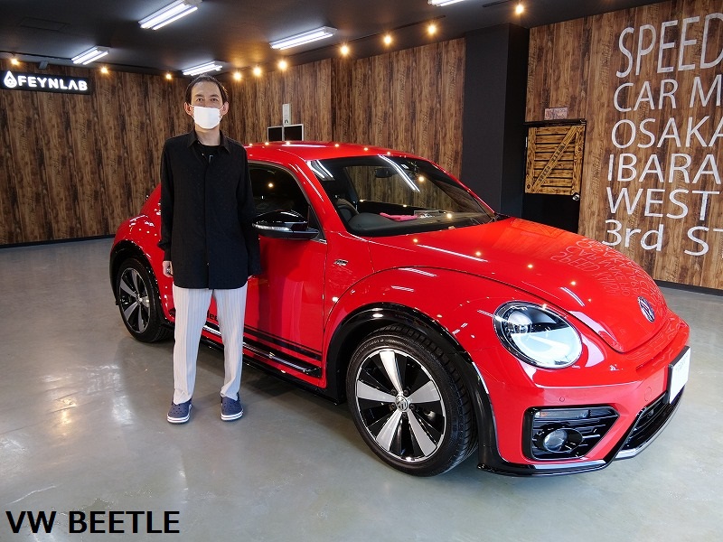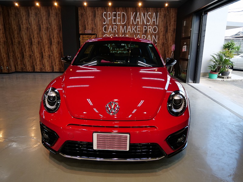 滋賀県草津市よりフォルクスワーゲン ビートルのご入庫です!ボディカラーはトルネードレッド!施工は