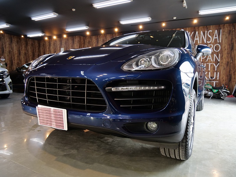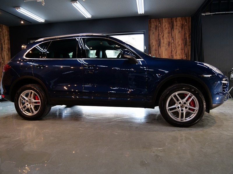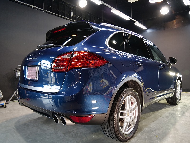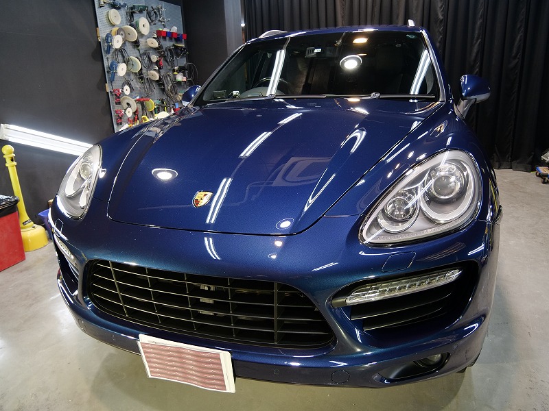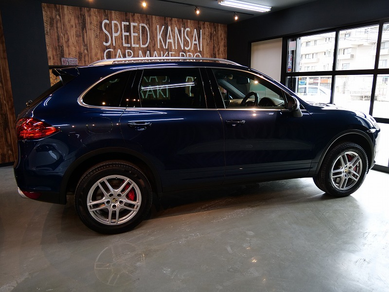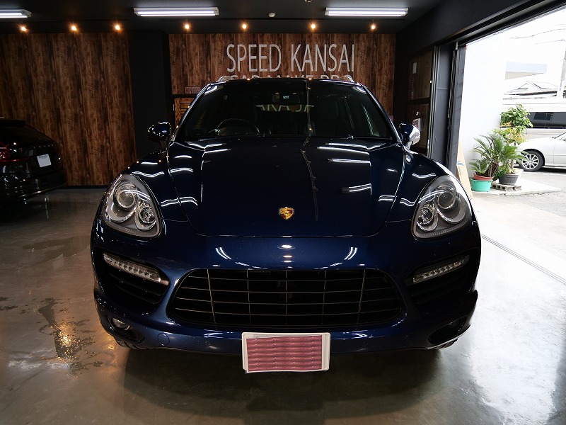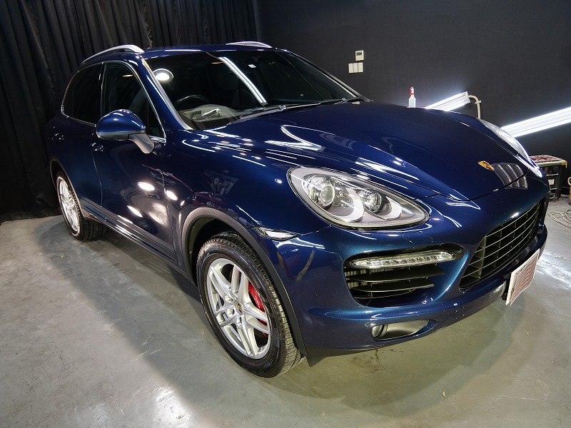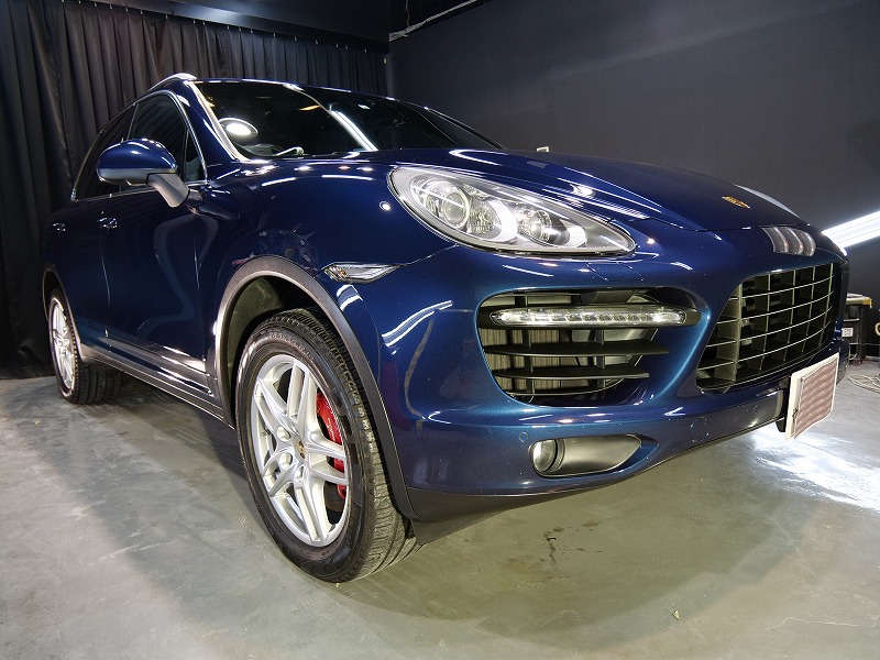 大阪府寝屋川市よりポルシェカイエンのご入庫です!ボディカラーはムーンライトブルーメタリック!施工は