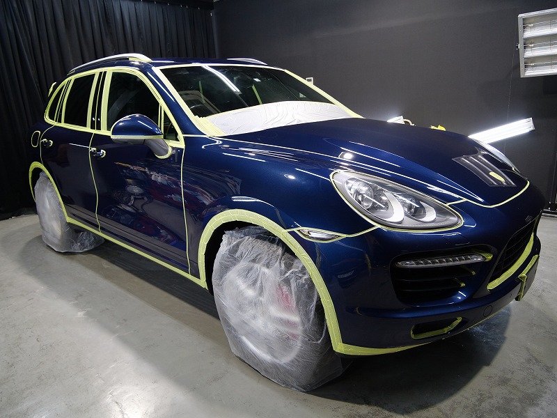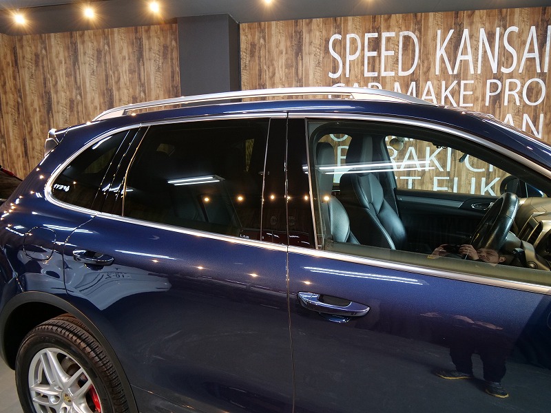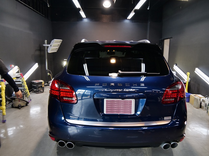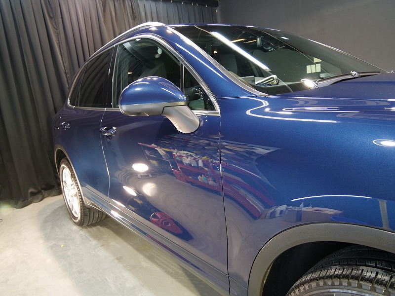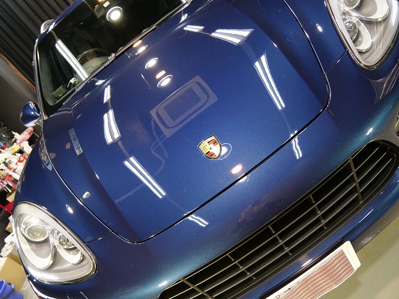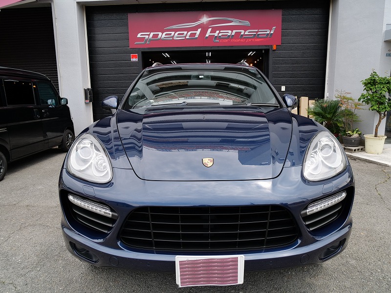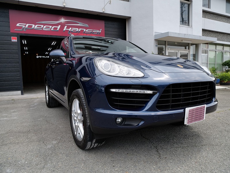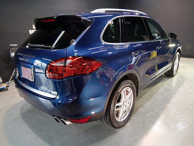 大阪府寝屋川市よりポルシェカイエンのご入庫です!ボディカラーはムーンライトブルーメタリック!施工は