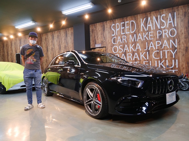 京都市よりメルセデスベンツAMG/A45Sのご入庫です!ボディカラーはコスモスブラック!施工はボディには