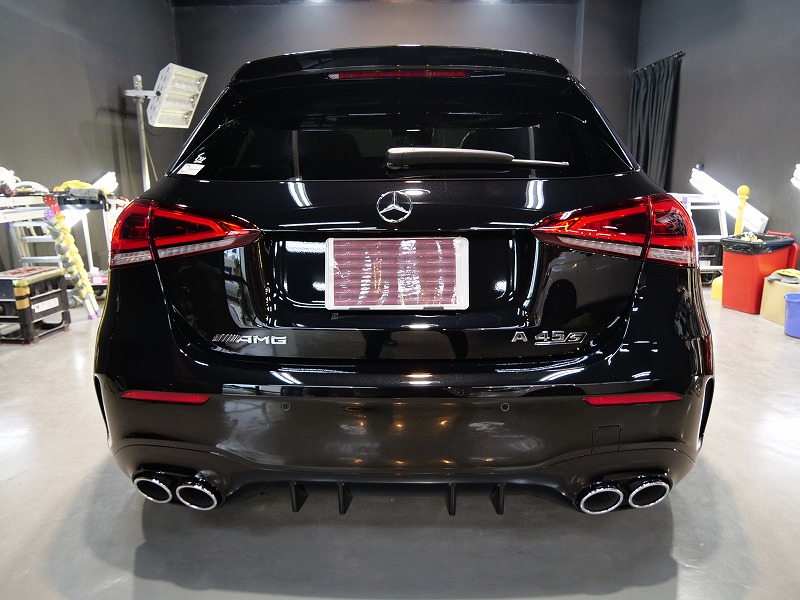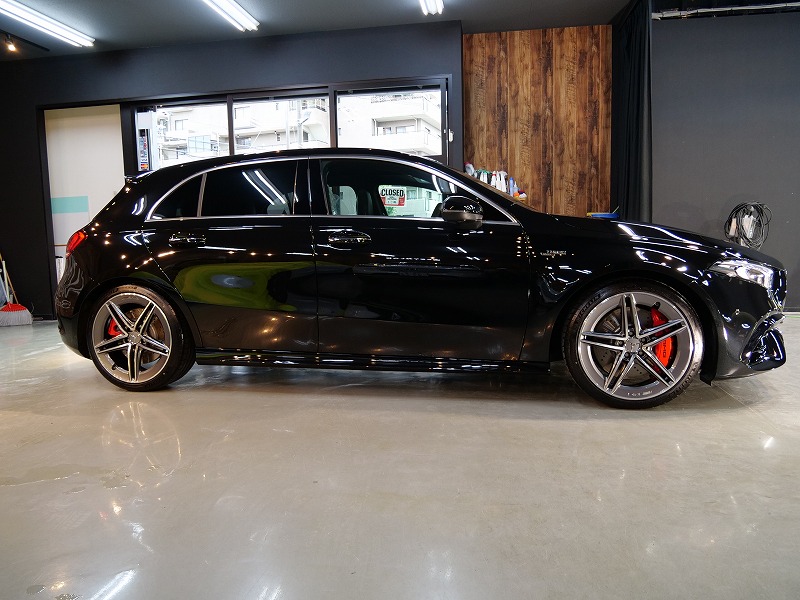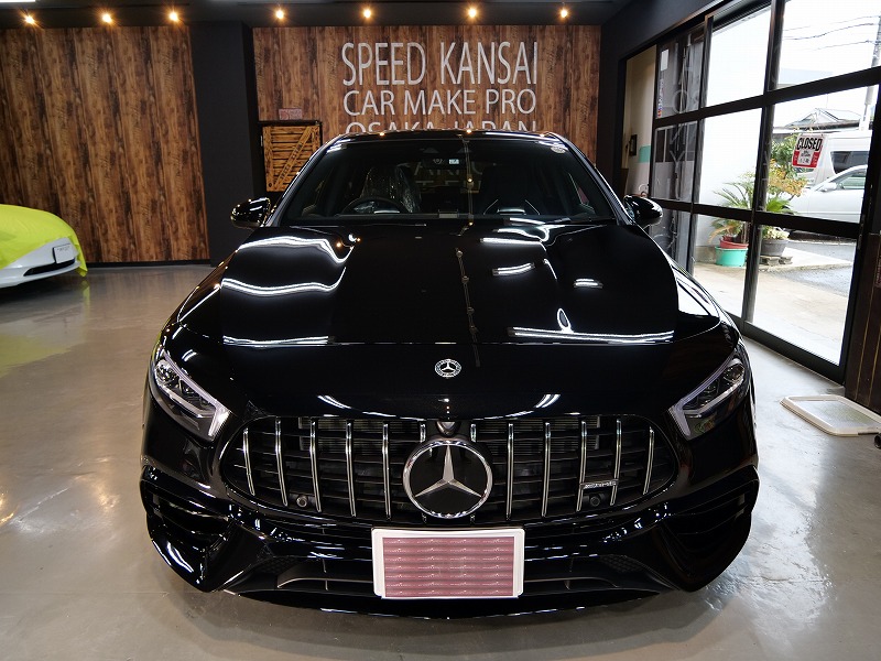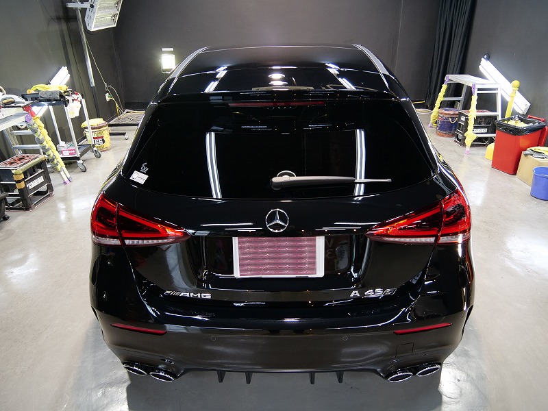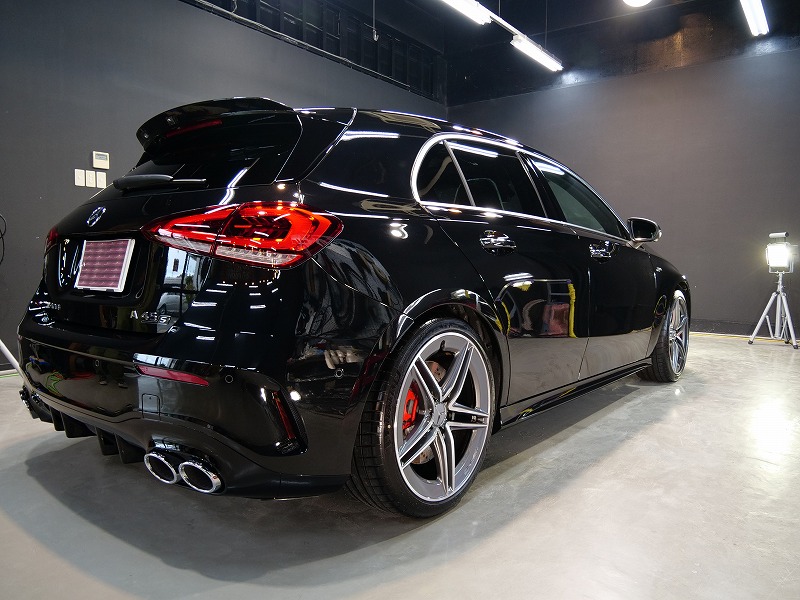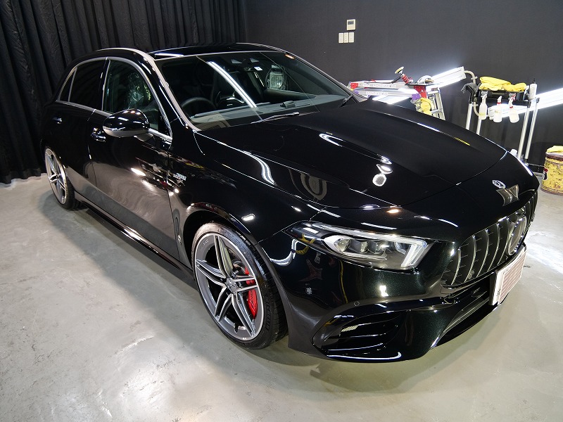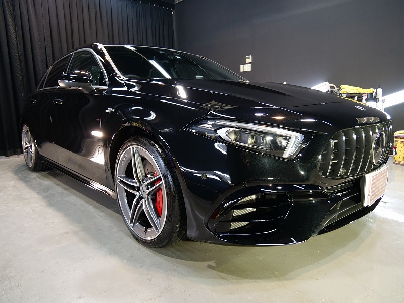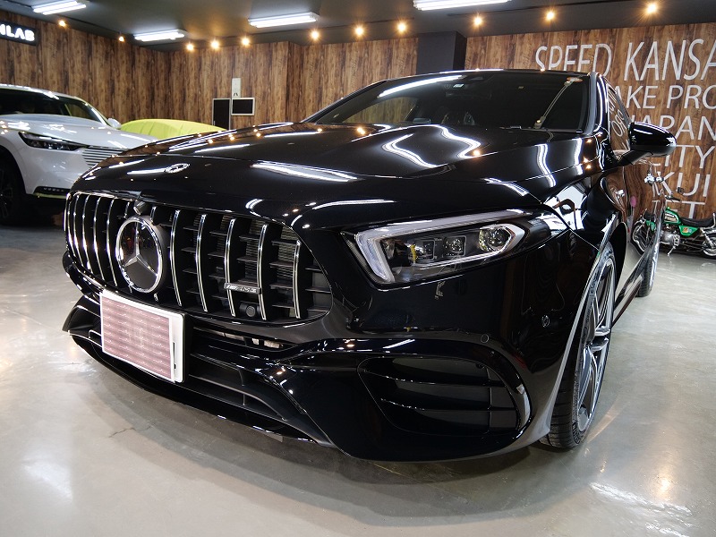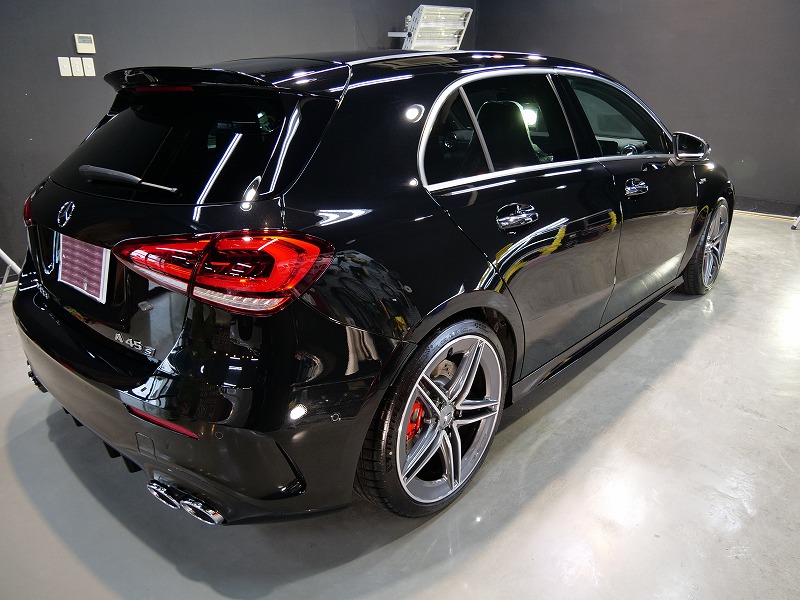 京都市よりメルセデスベンツAMG/A45Sのご入庫です!ボディカラーはコスモスブラック!施工はボディには