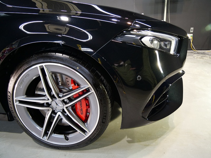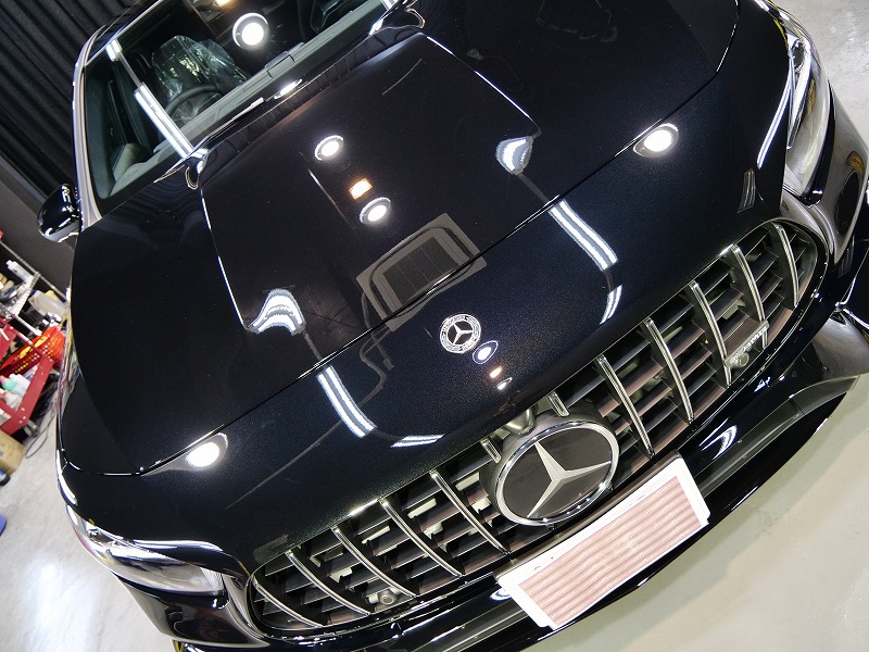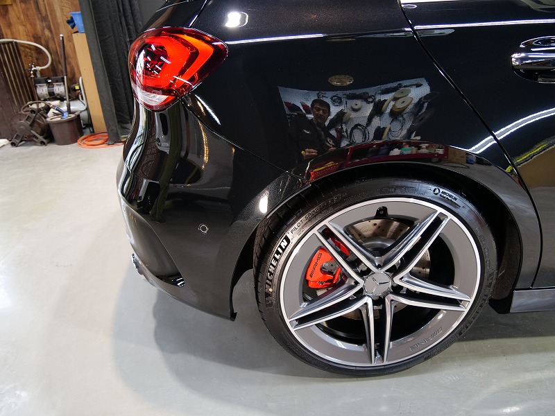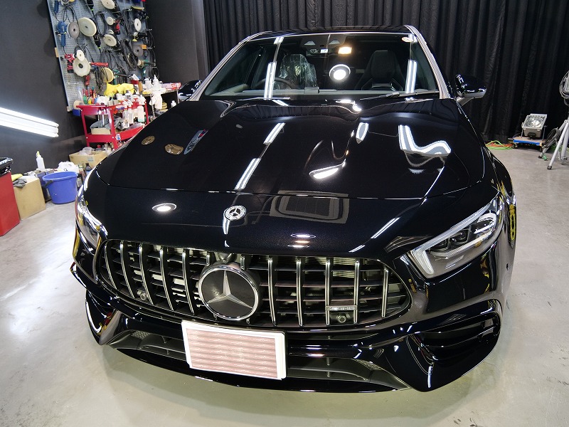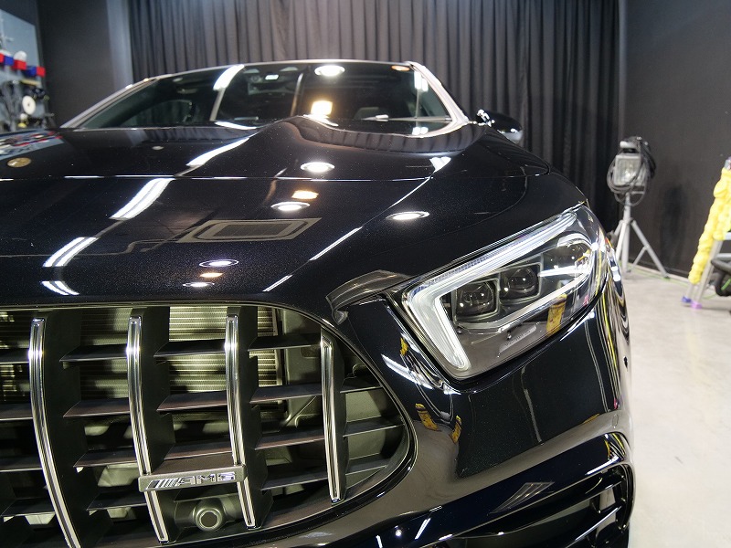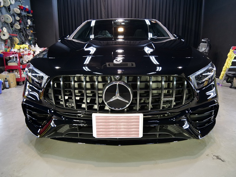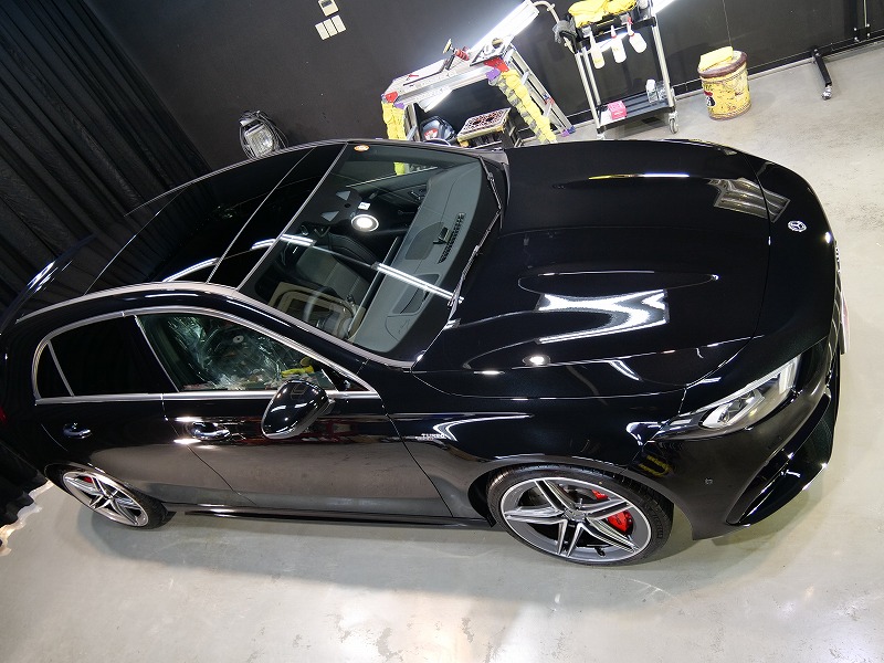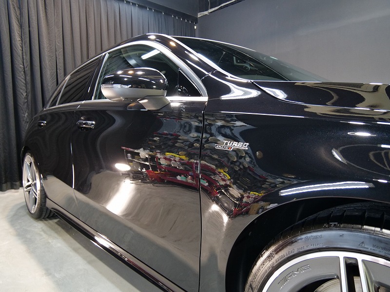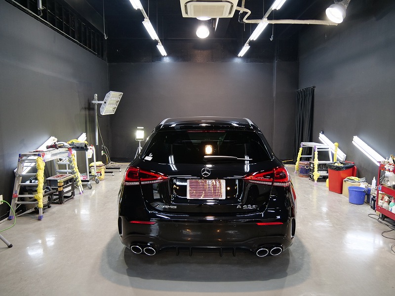 京都市よりメルセデスベンツAMG/A45Sのご入庫です!ボディカラーはコスモスブラック!施工はボディには