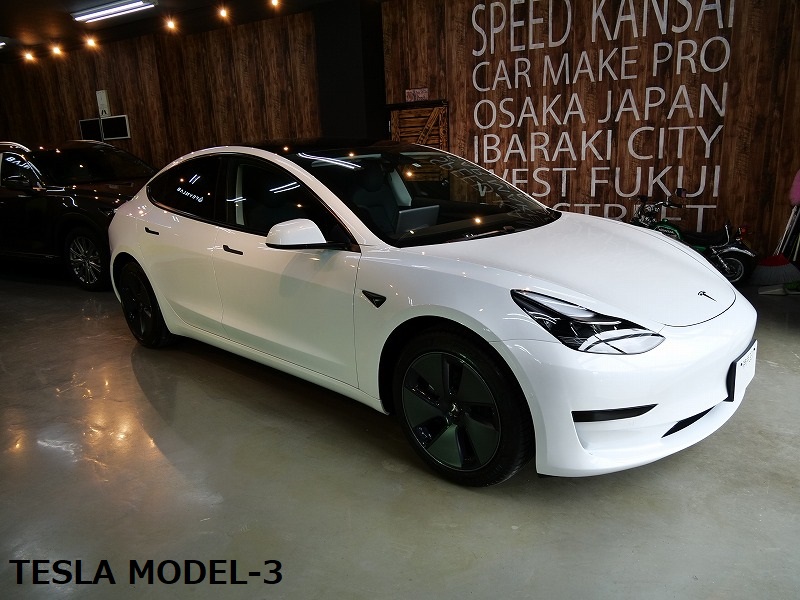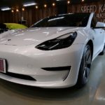 神戸市より人気のテスラ モデル3のご入庫です!ボディカラーはプラチナホワイトパール!施工はボディには