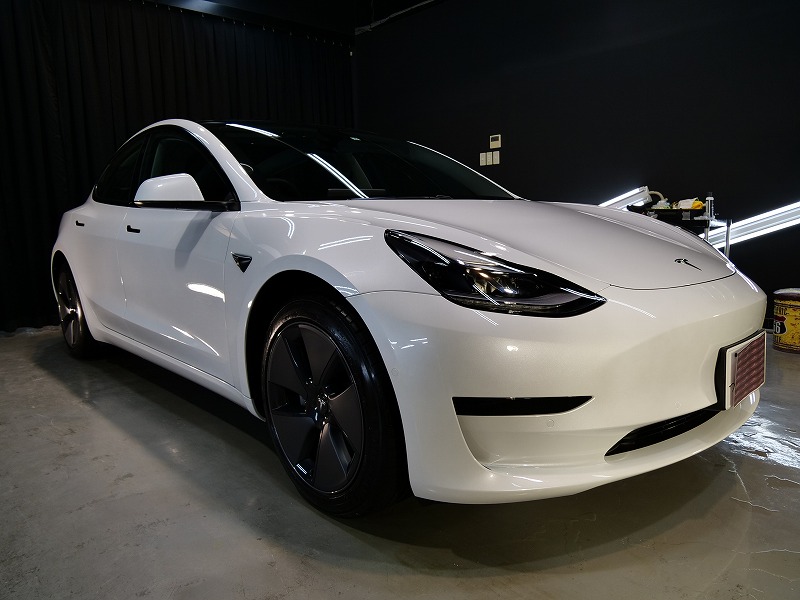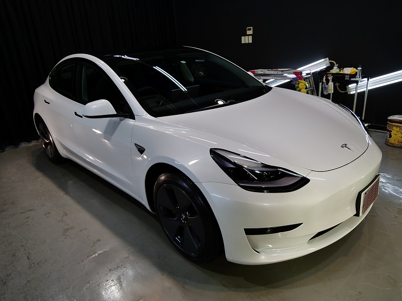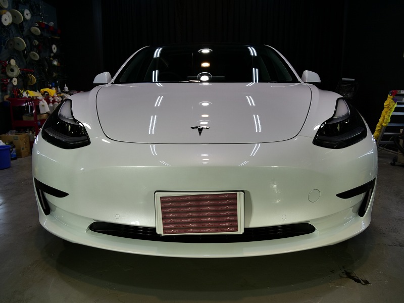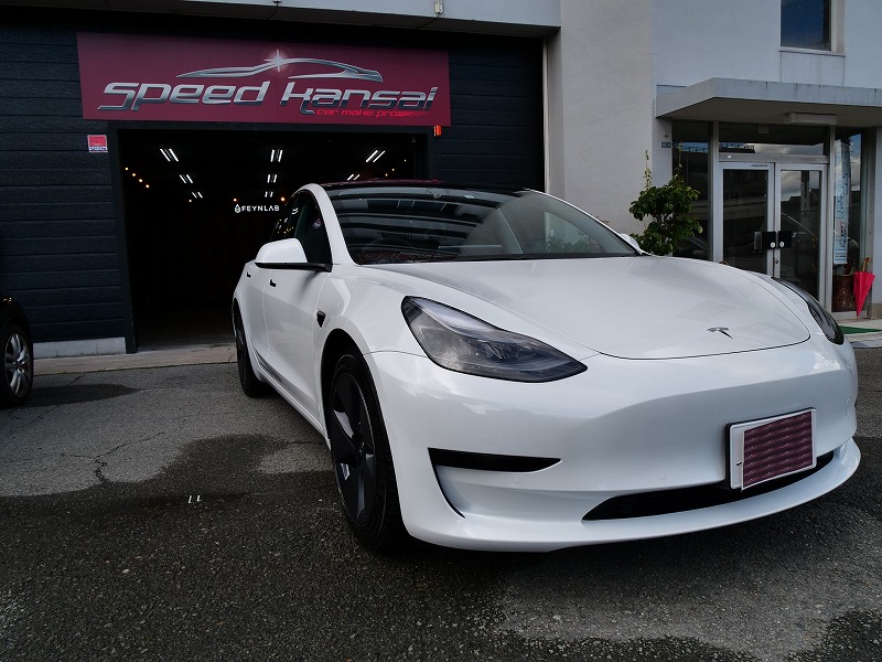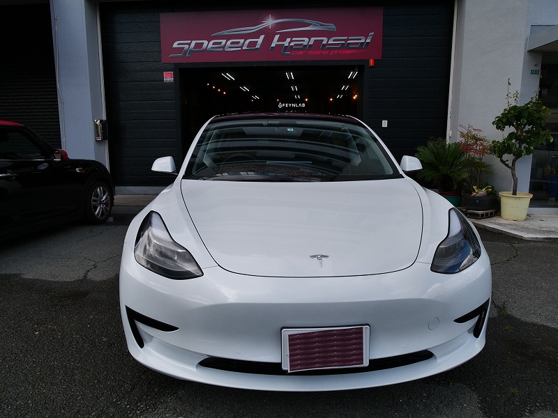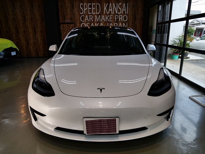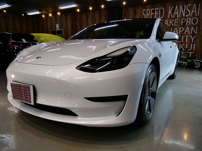 神戸市より人気のテスラ モデル3のご入庫です!ボディカラーはプラチナホワイトパール!施工はボディには