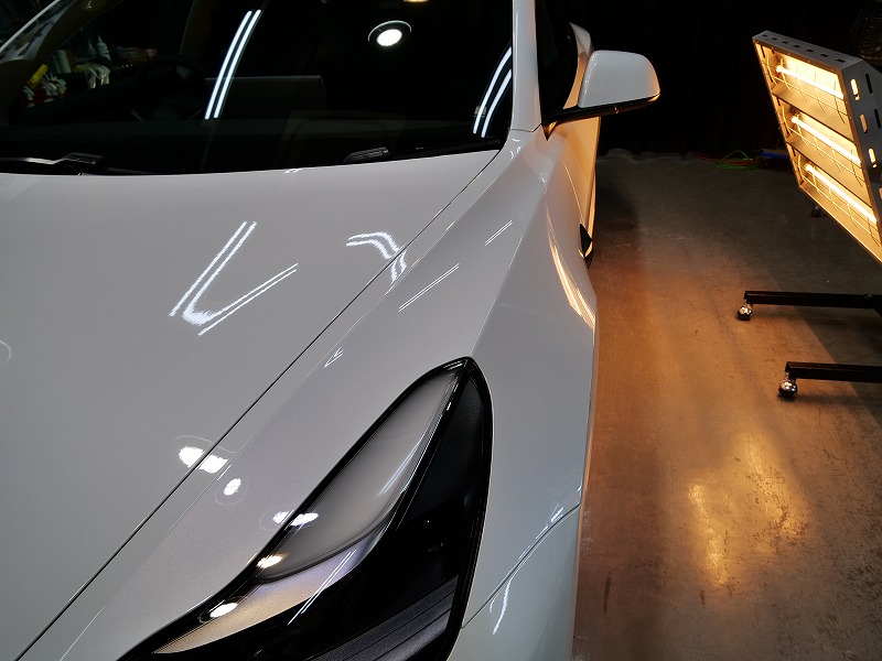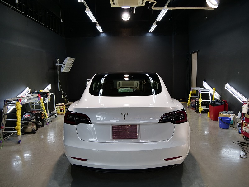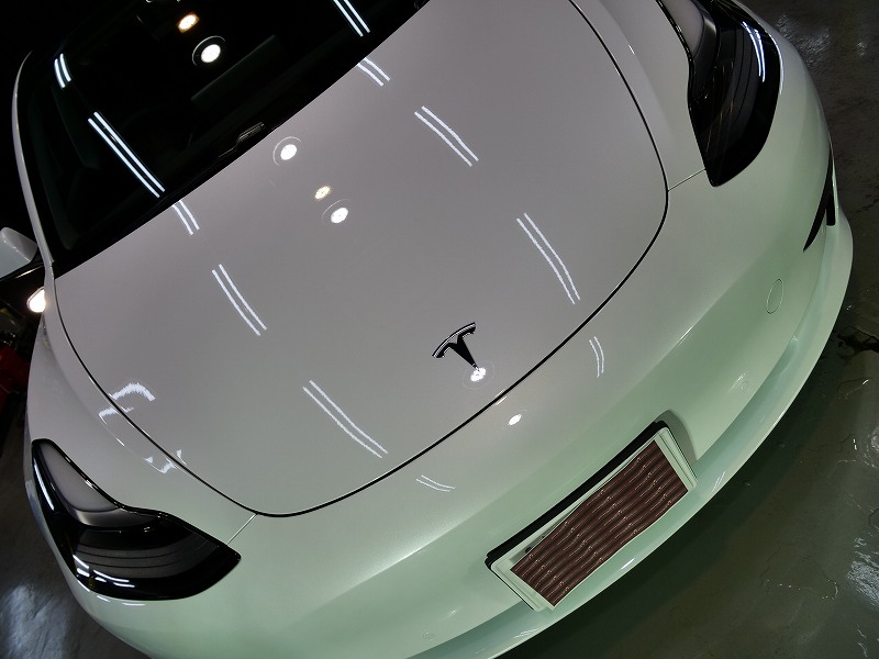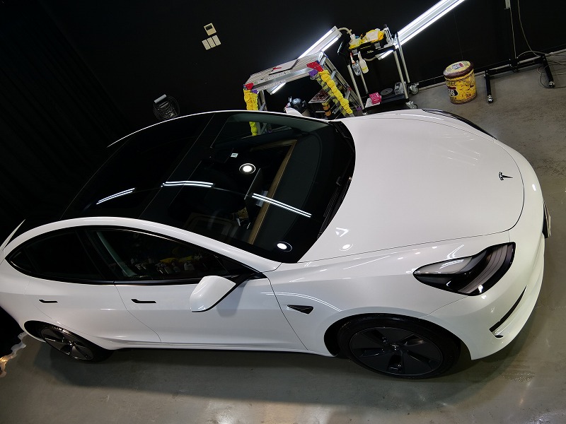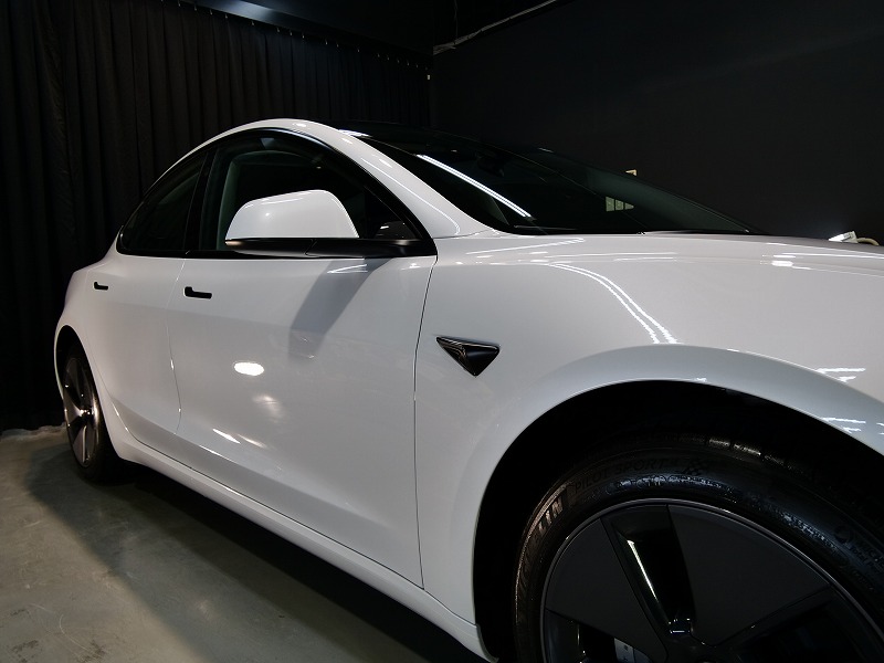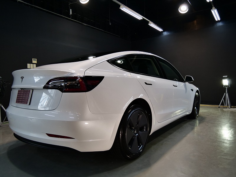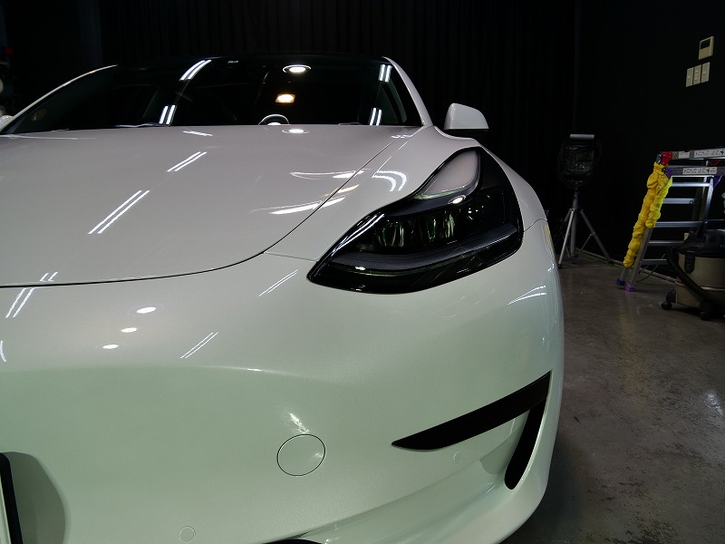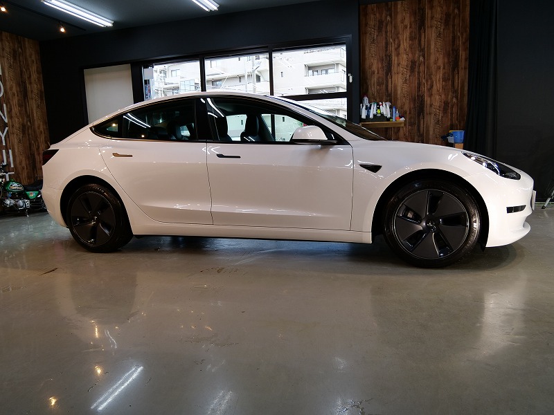 神戸市より人気のテスラ モデル3のご入庫です!ボディカラーはプラチナホワイトパール!施工はボディには