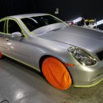 大阪府池田市より日産スカイライン350GTのご入庫です!ボディカラーはシルバー!施工はボディには