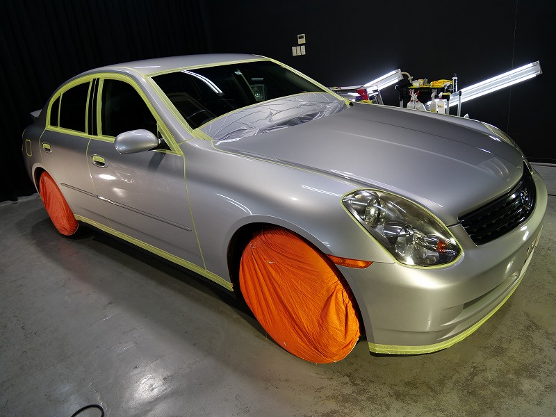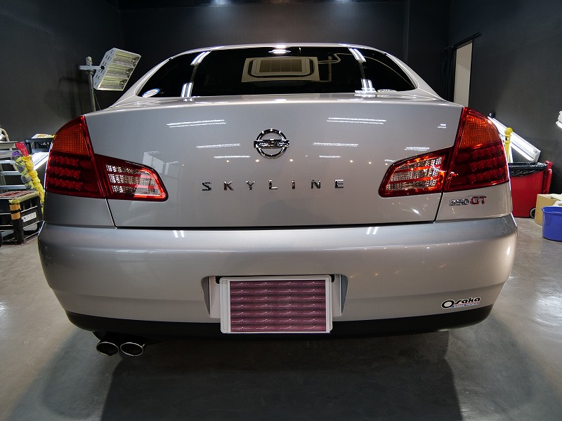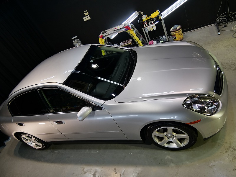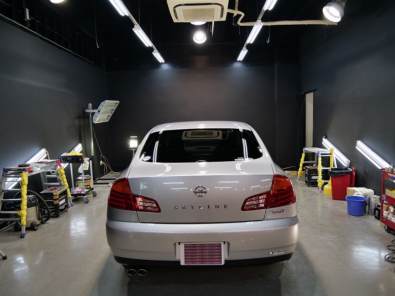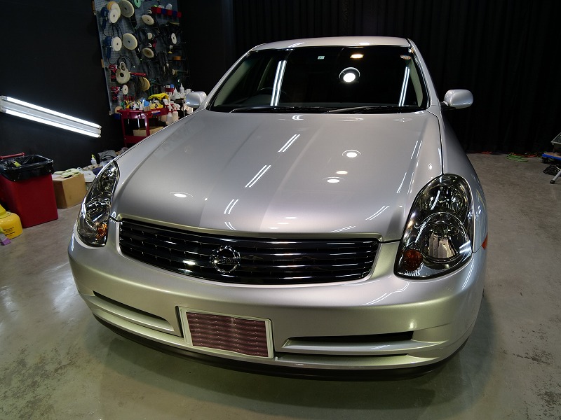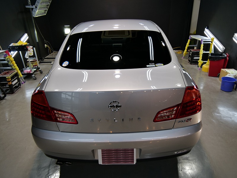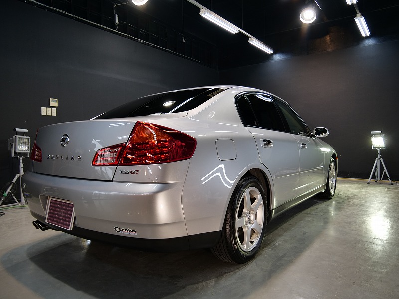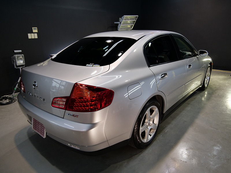大阪府池田市より日産スカイライン350GTのご入庫です!ボディカラーはシルバー!施工はボディには