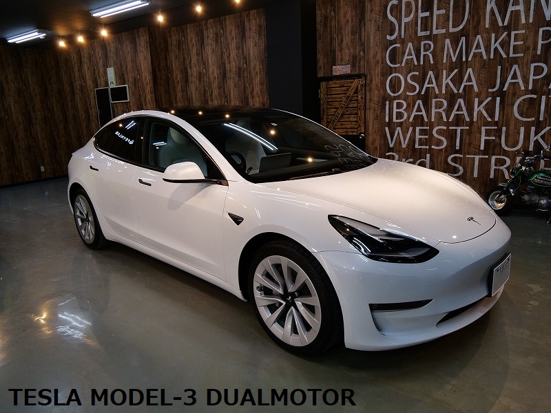 大阪府茨木市より当店のリピーター様が人気のテスラモデル3をお持ち下さいました!ボディカラーはパール