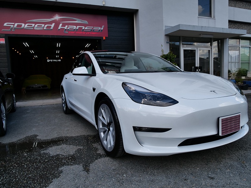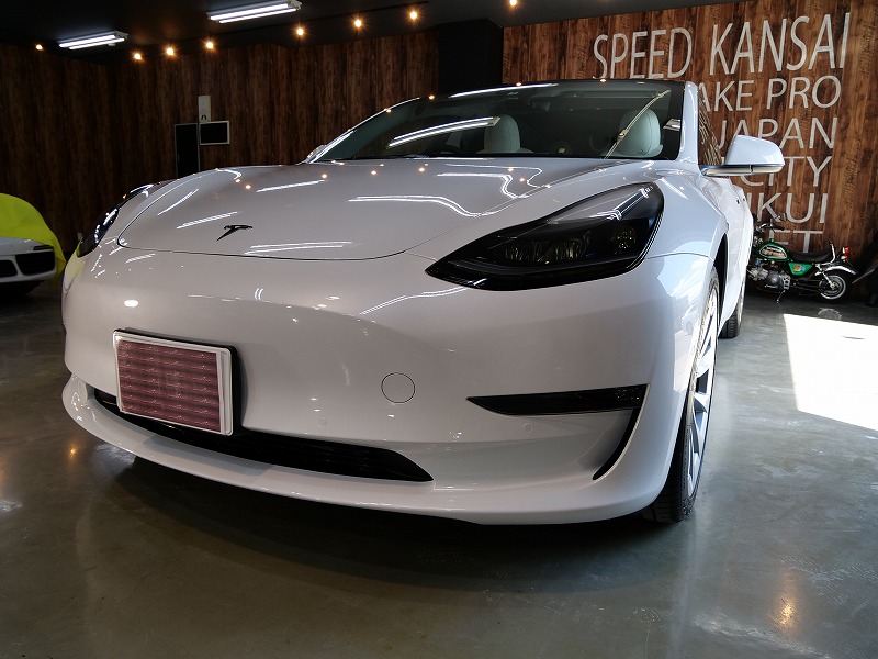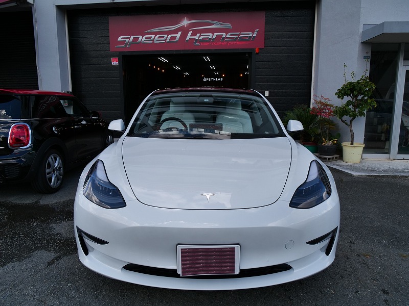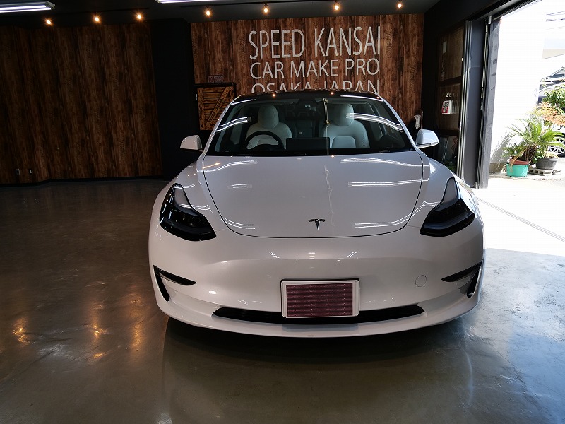 大阪府茨木市より当店のリピーター様が人気のテスラモデル3をお持ち下さいました!ボディカラーはパール