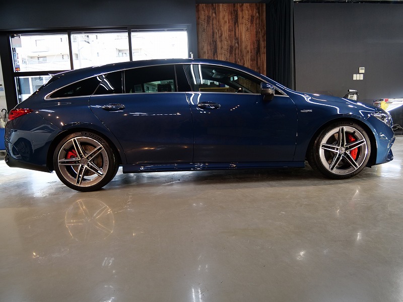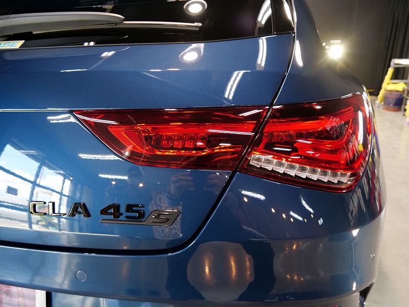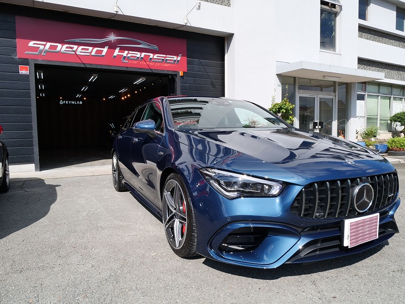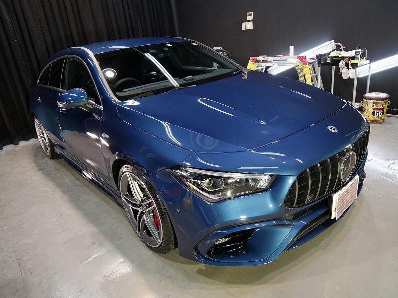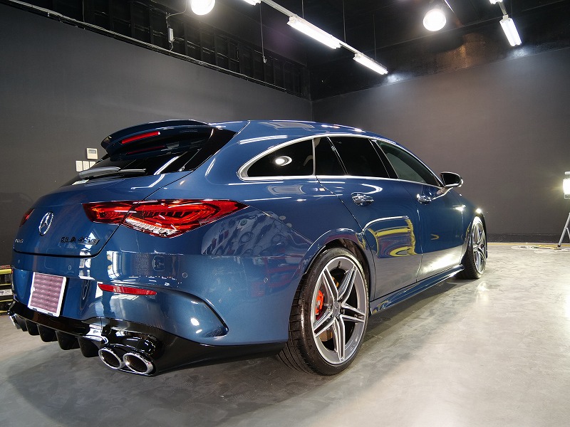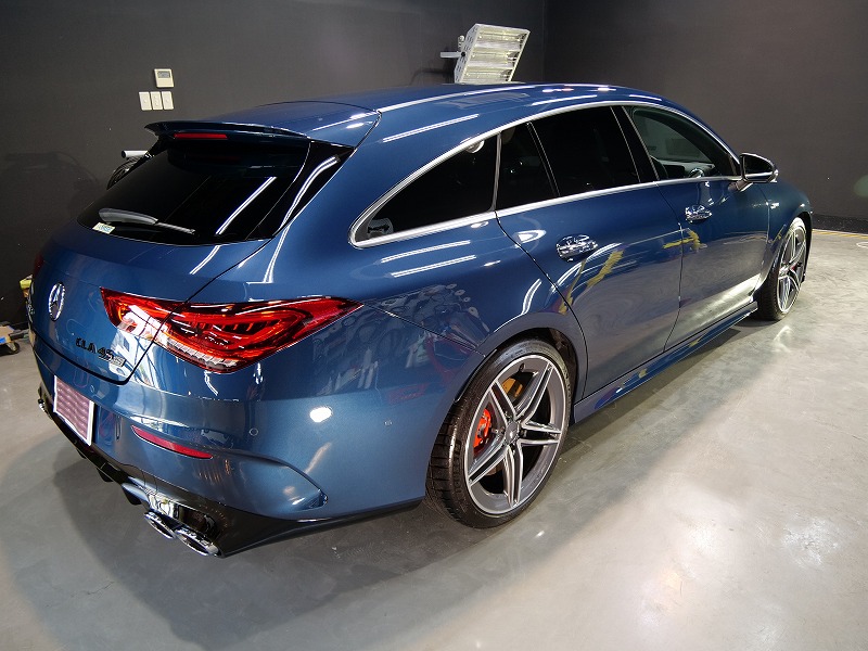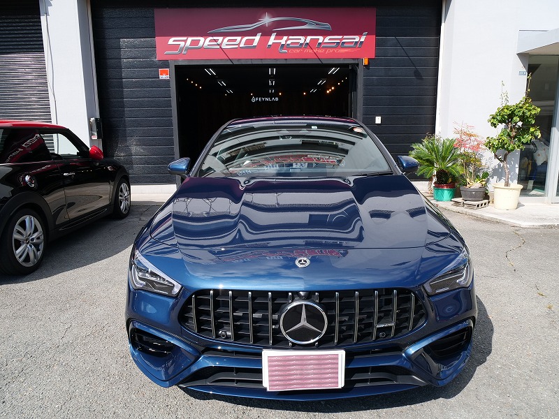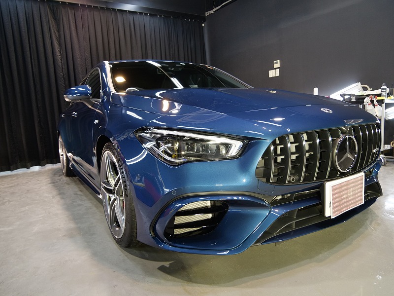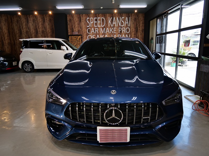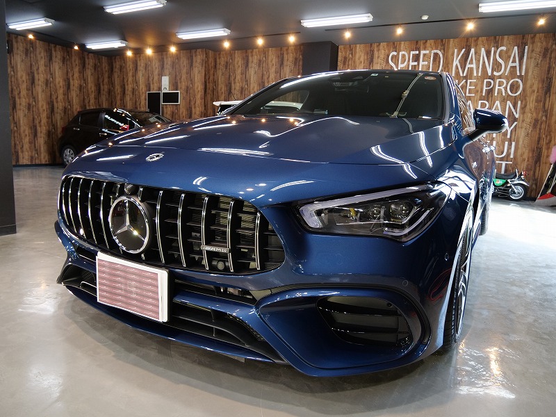大阪府寝屋川市よりメルセデスベンツCLA 45S AMG のご入庫です!ボディカラーはデニムブルー!施工は