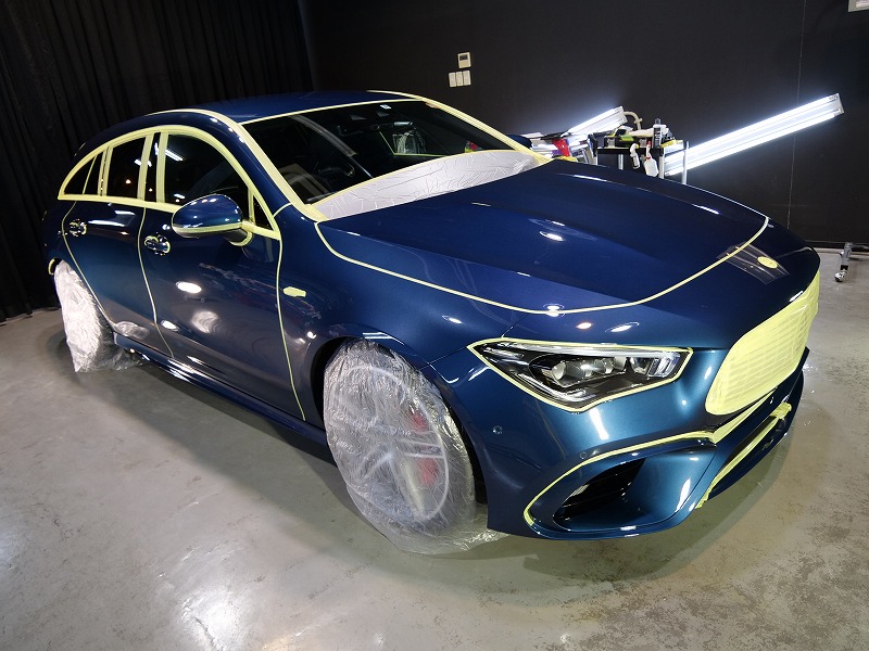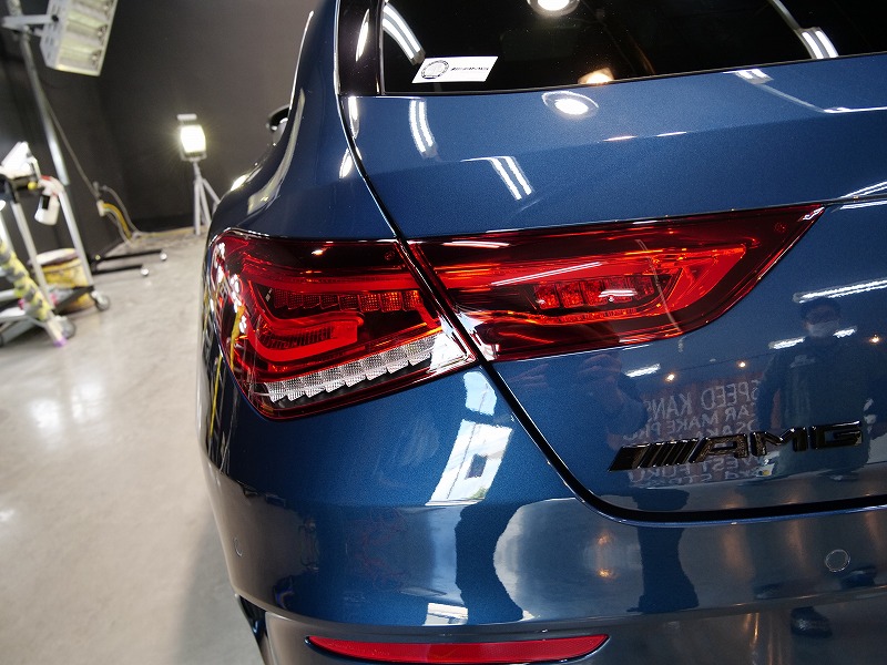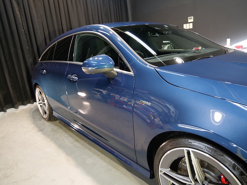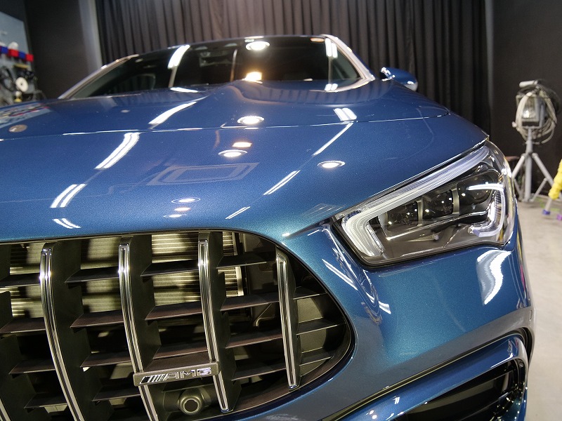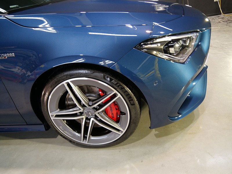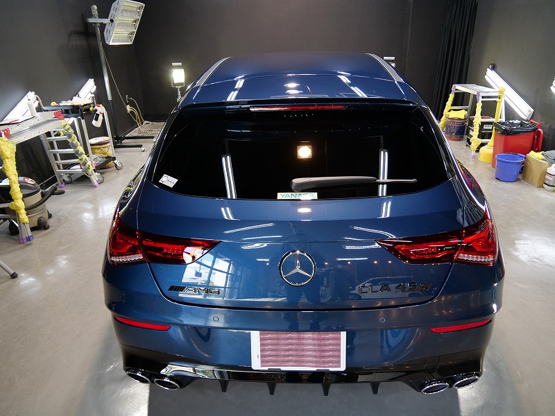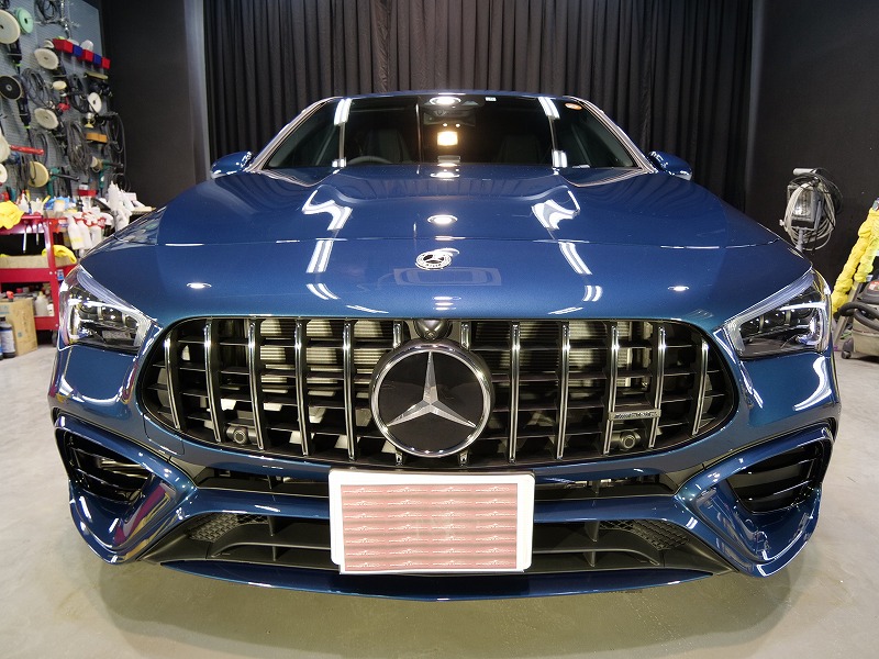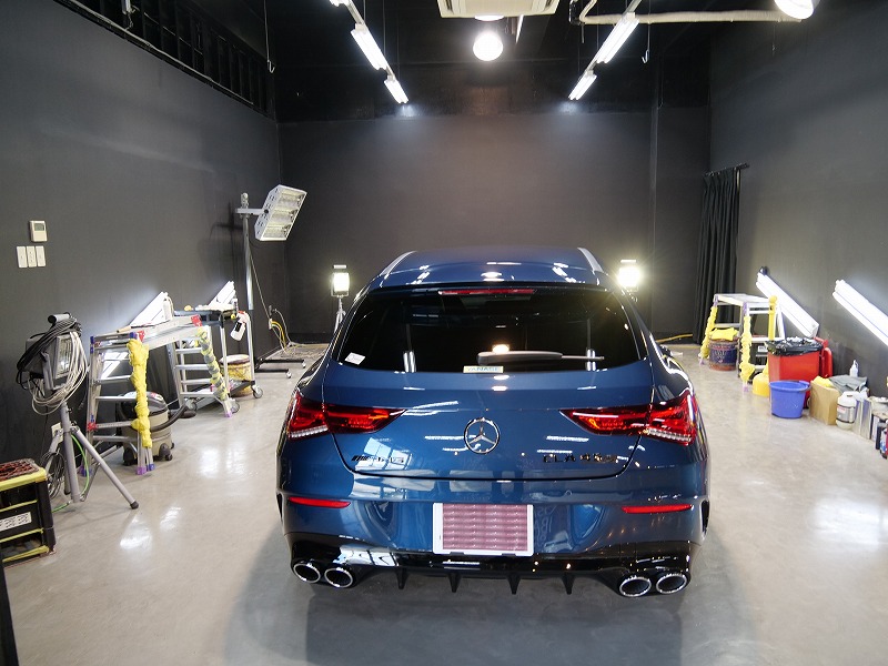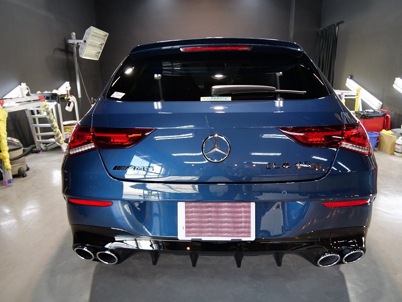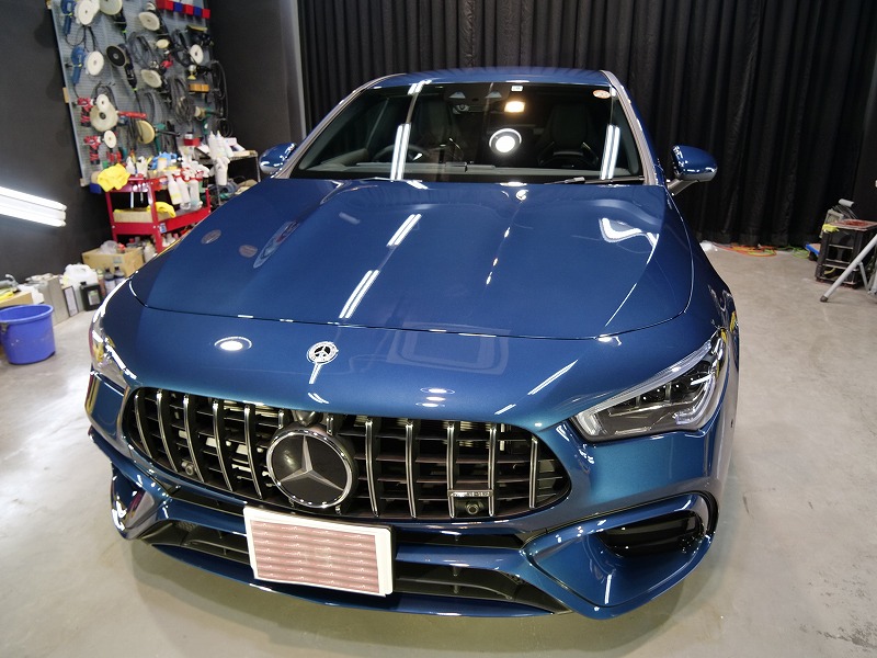 大阪府寝屋川市よりメルセデスベンツCLA 45S AMG のご入庫です!ボディカラーはデニムブルー!施工は