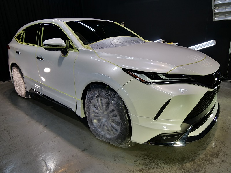 大阪府枚方市よりトヨタハリアーのご入庫です!ボディカラーはホワイトパールクリスタルシャイン!施工は