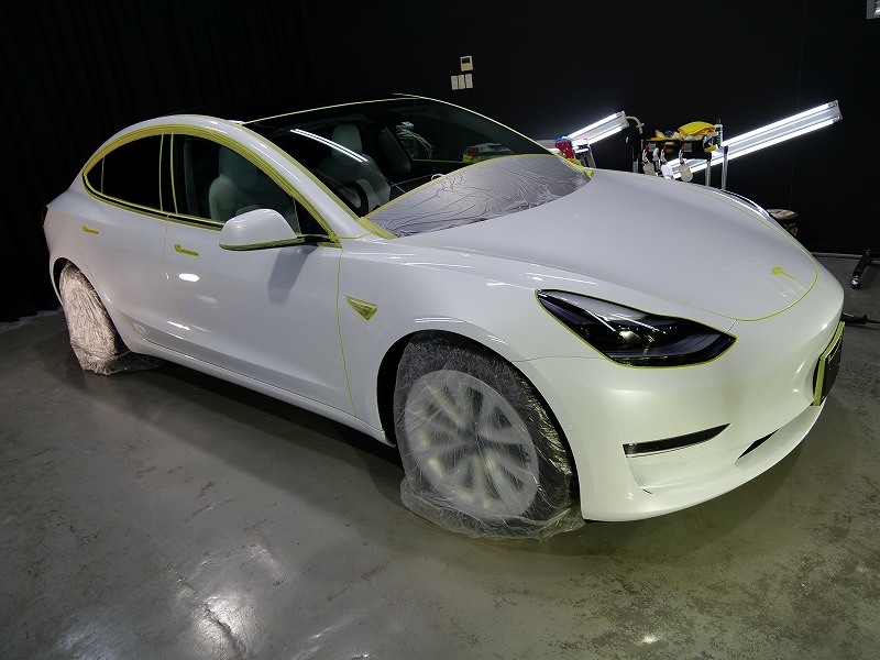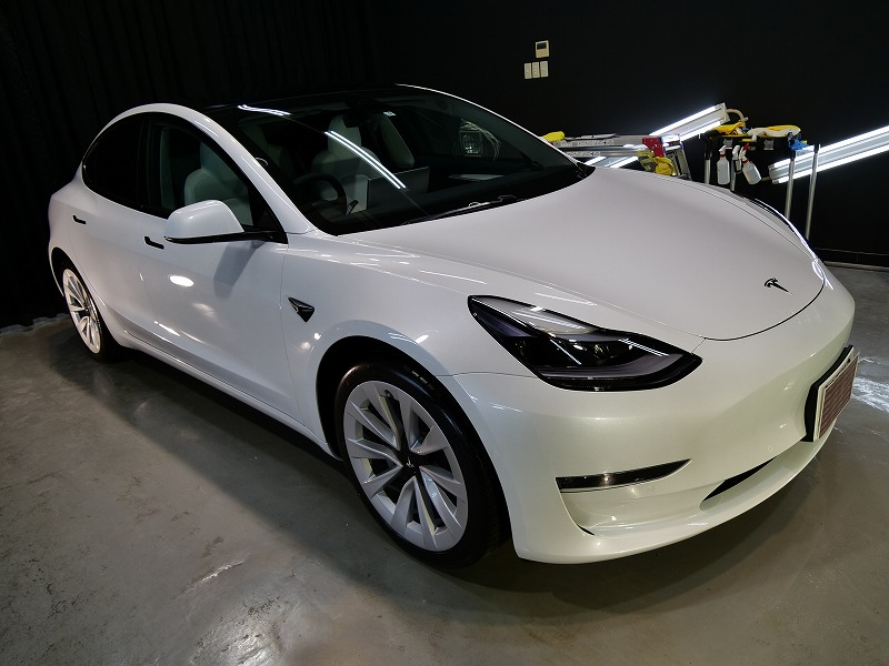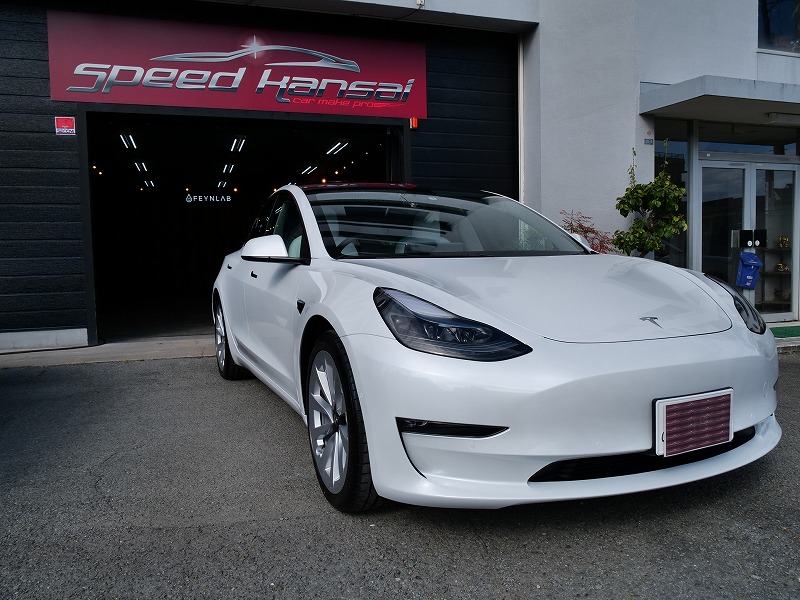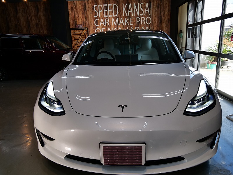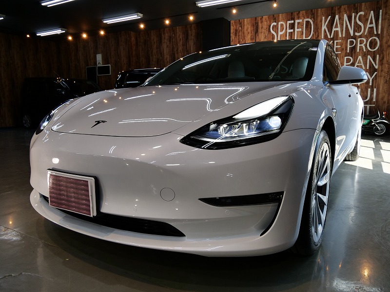 大阪府茨木市よりテスラモデル3デュアルモーターのご入庫です!ボディカラーはパールホワイトマルチ