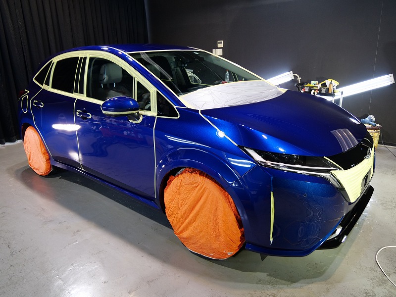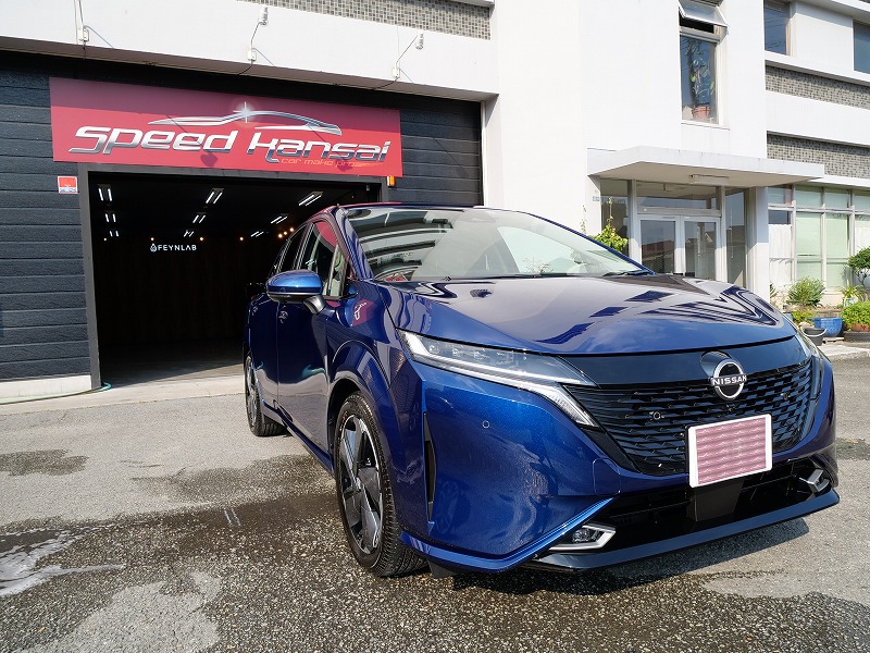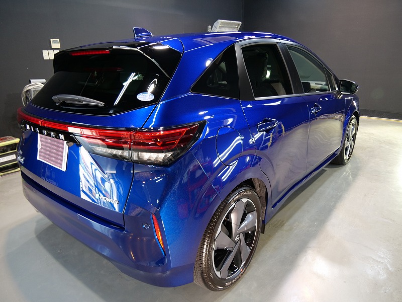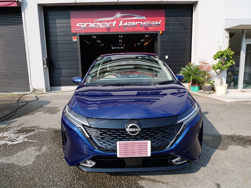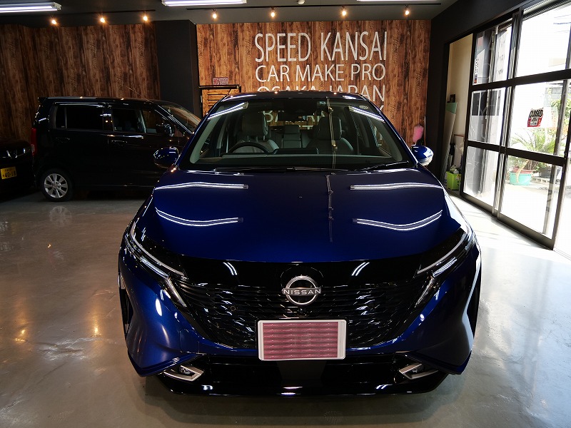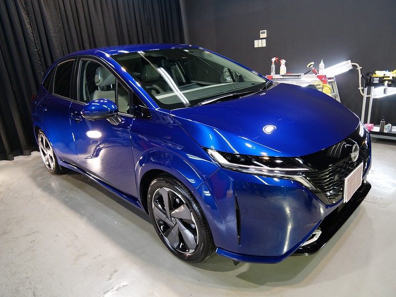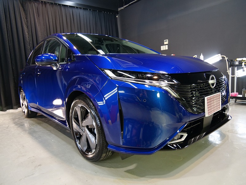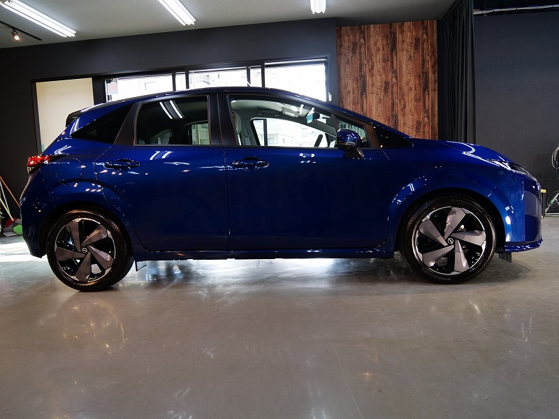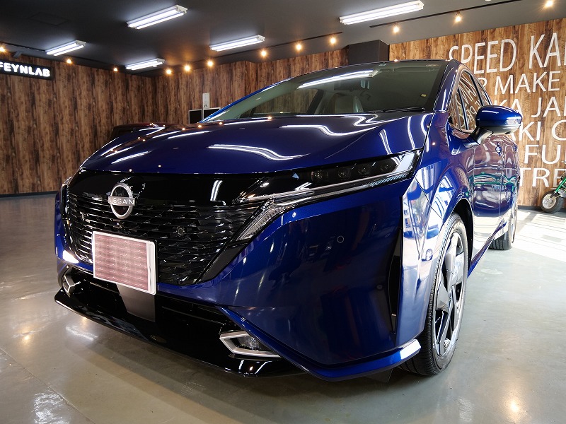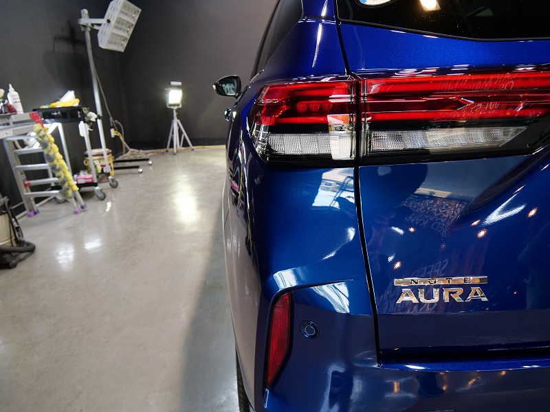 大阪府柏原市より新しく出た日産オーラのご入庫です!ボディカラーはオーロラフレアブルーパール!施工は