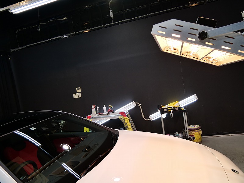 デジタルホワイト!施工はボディには完全無機質のクォーツ(親水性)/ホイールコーティング/サンルーフ