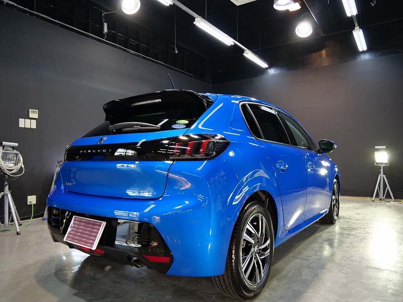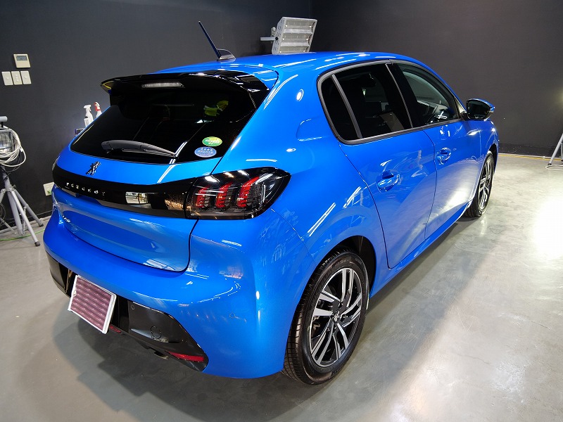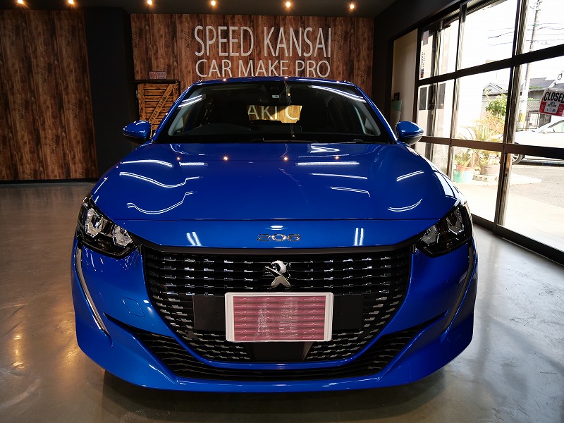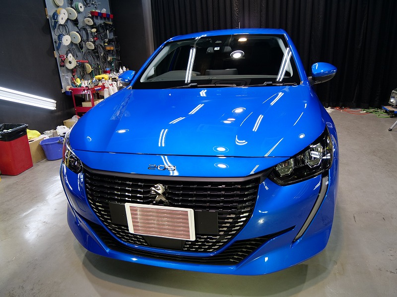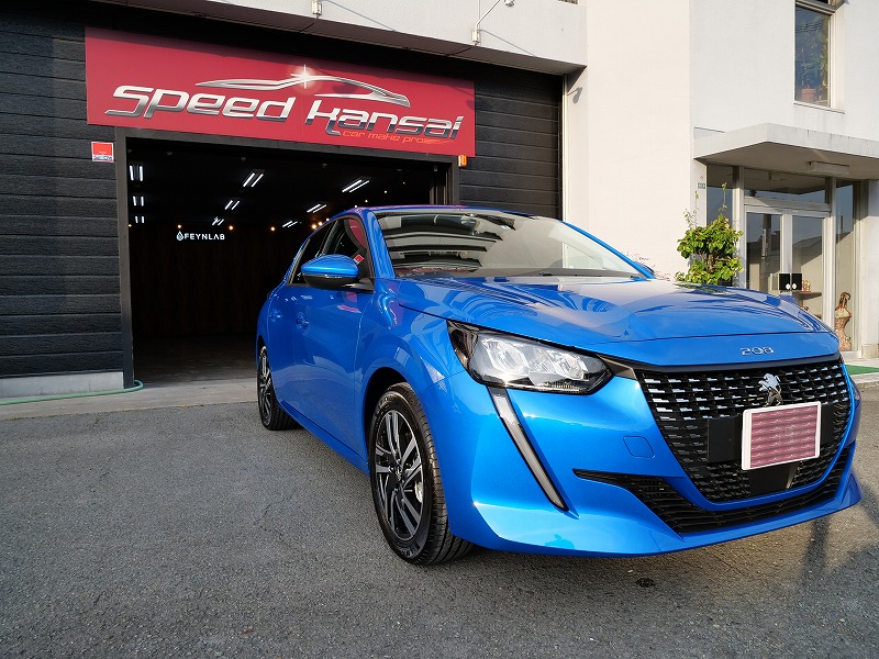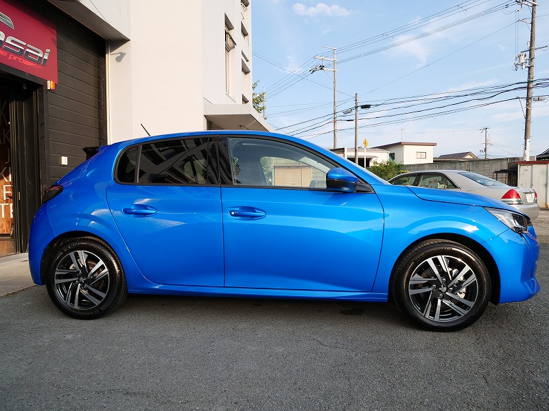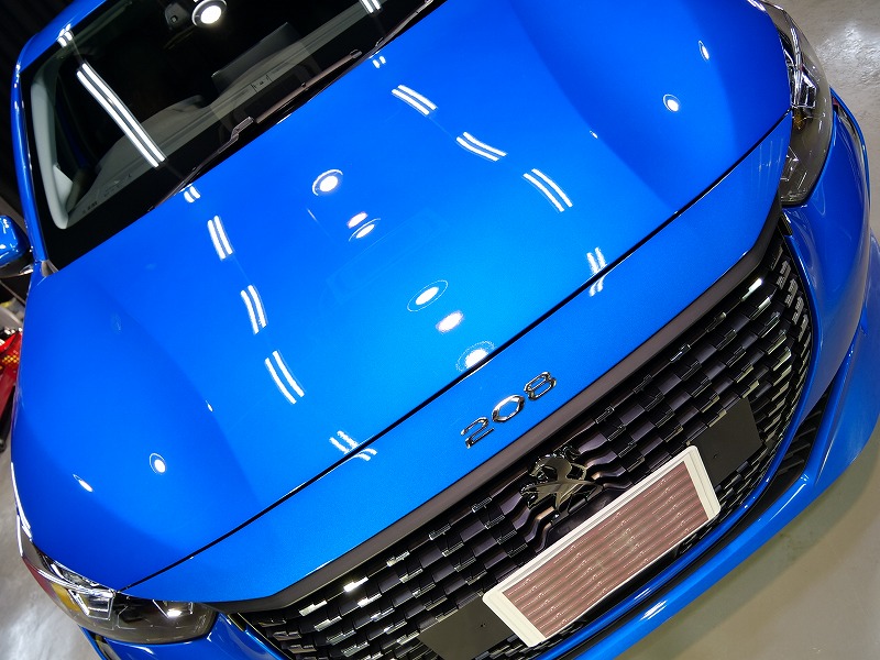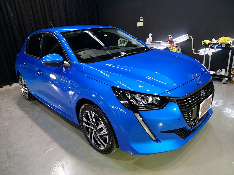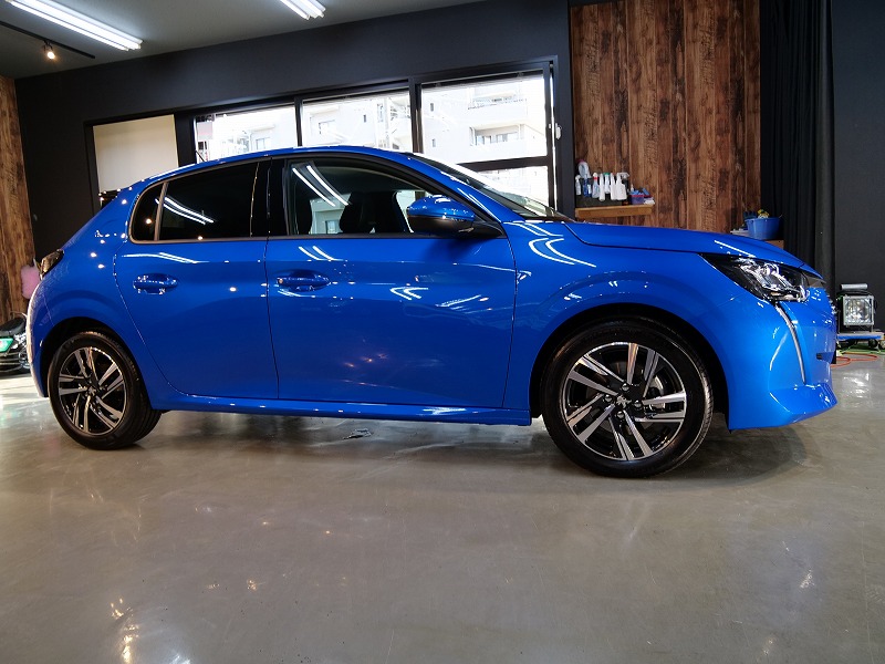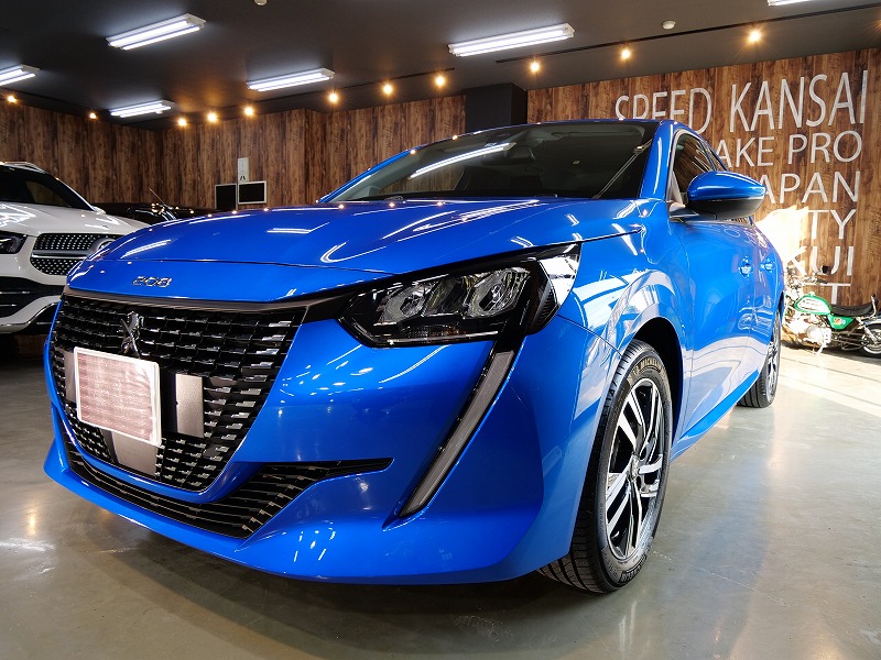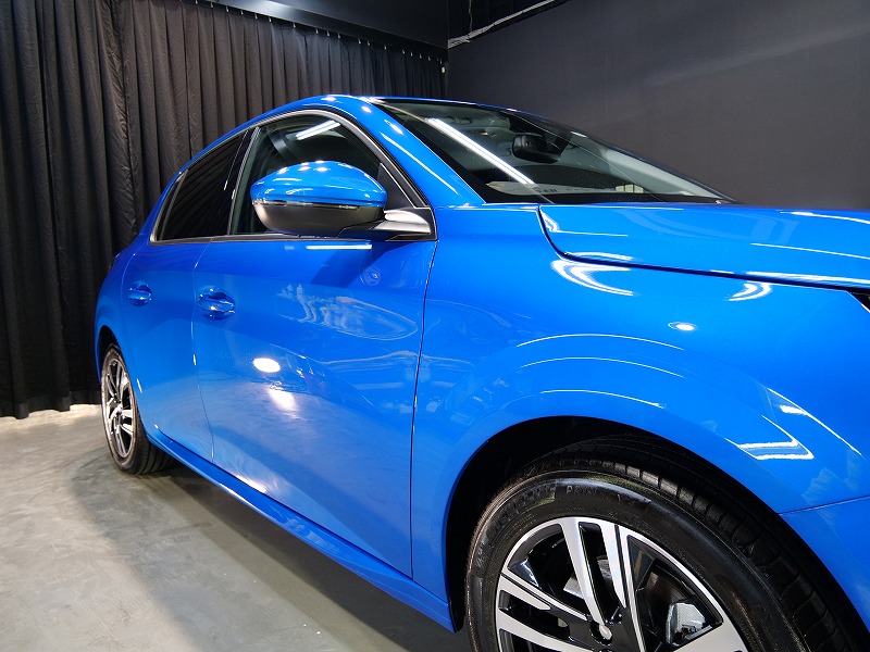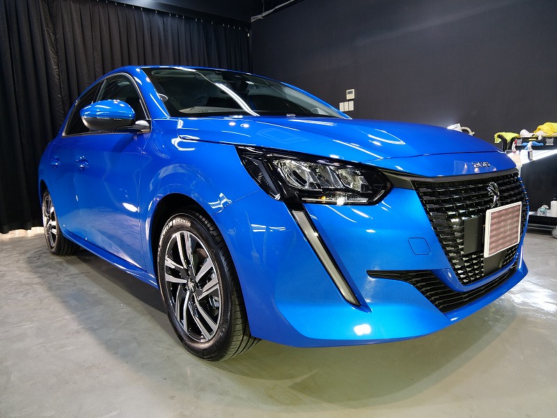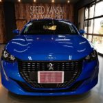神戸市よりプジョー208のご入庫です!ボディカラーはヴァーディゴブルー!施工はボディには完全無機質の