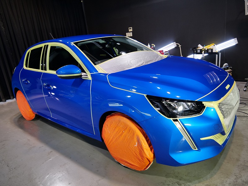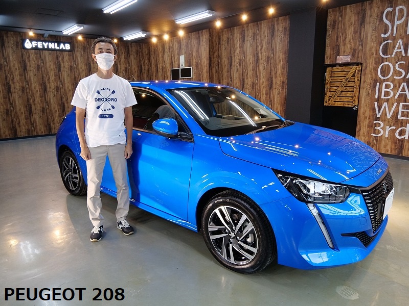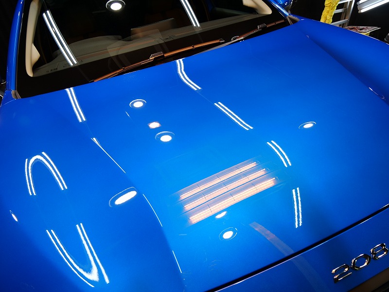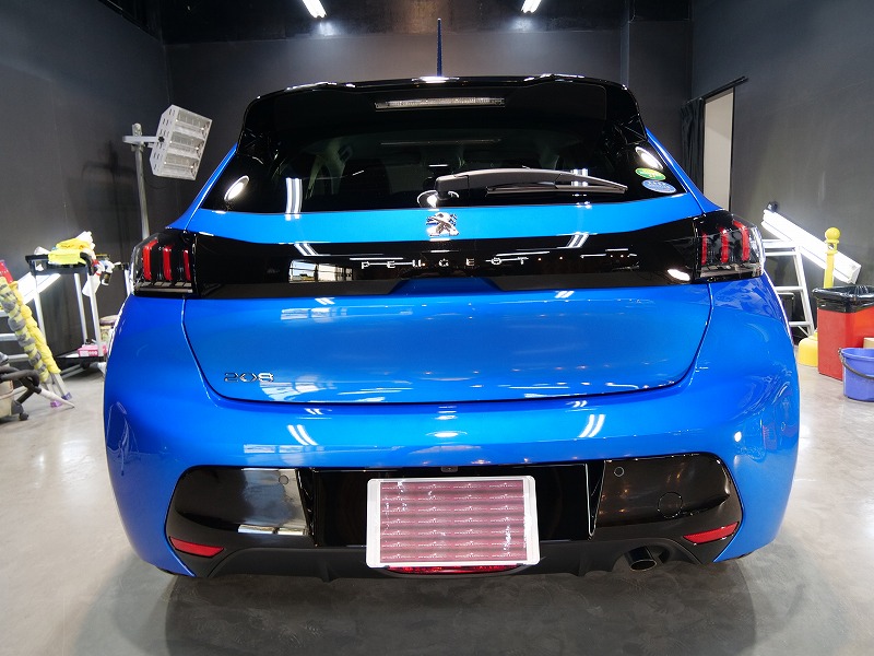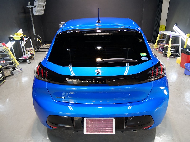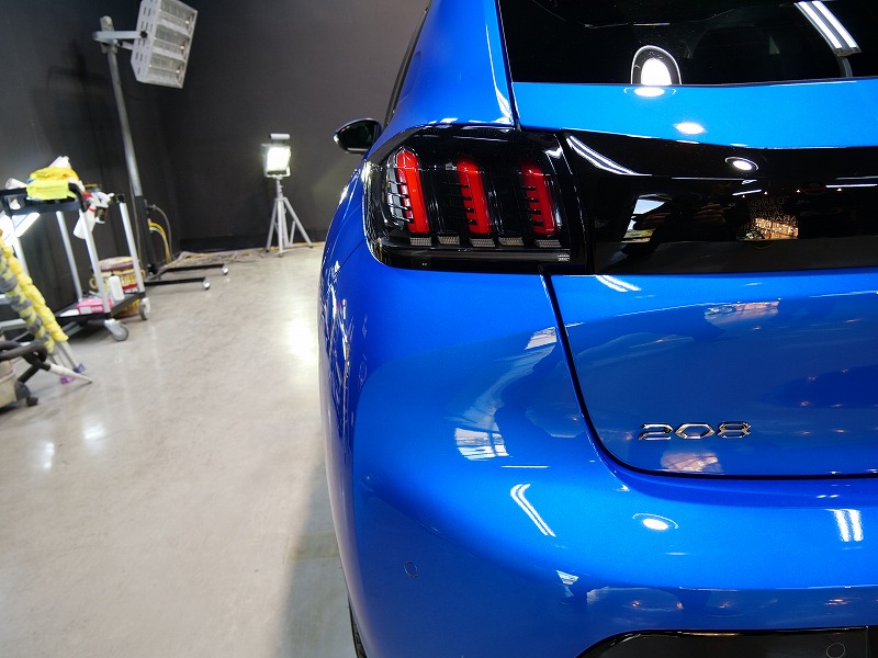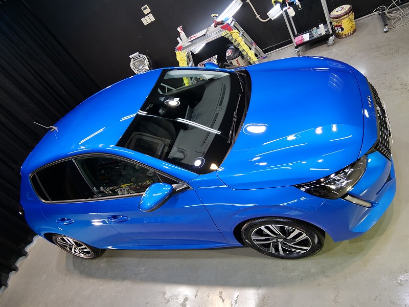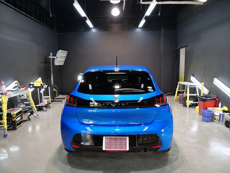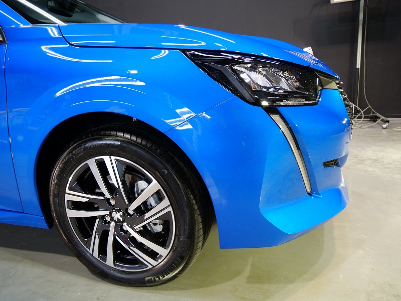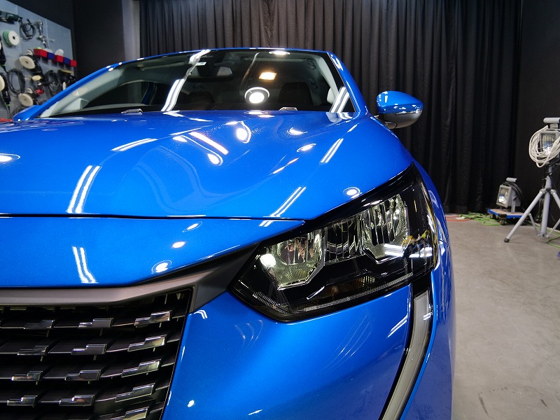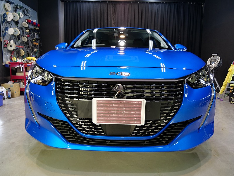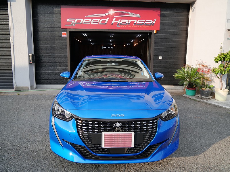 神戸市よりプジョー208のご入庫です!ボディカラーはヴァーディゴブルー!施工はボディには完全無機質の
