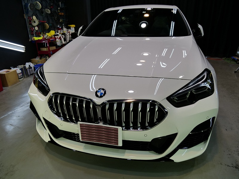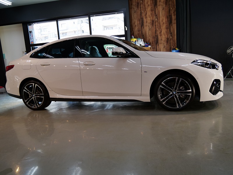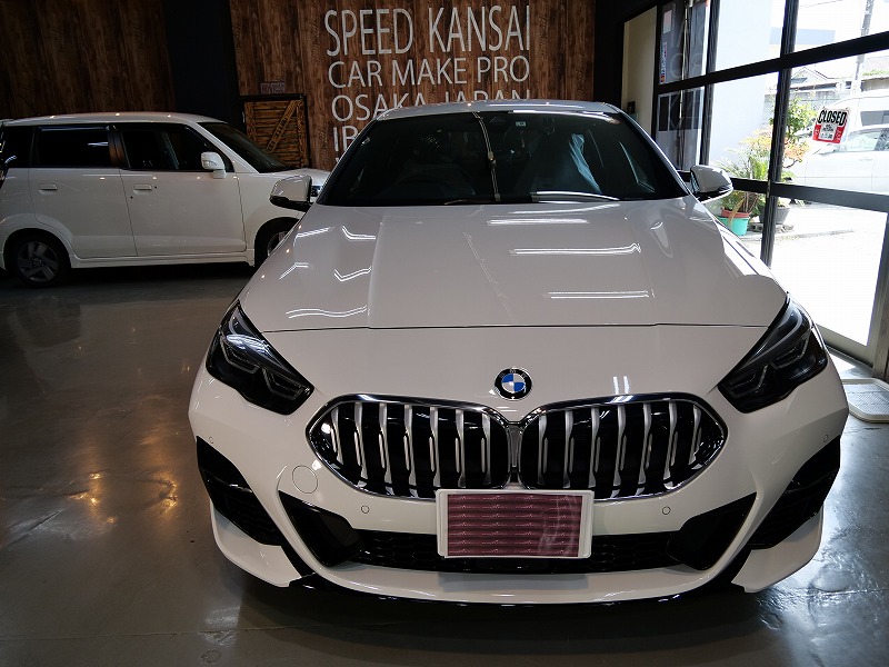 大阪府茨木市よりBMW218iグランクーペのご入庫です!ボディカラーはアルピンホワイト(ソリッド)施工は