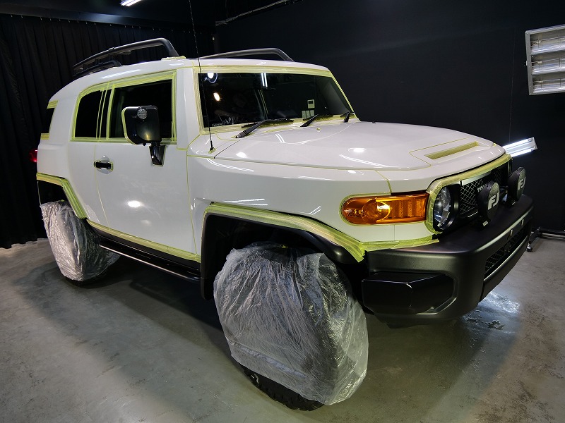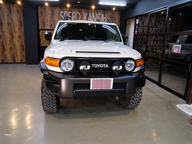 大阪府吹田市よりトヨタ FJ-クルーザーのご入庫です!ボディカラーはホワイト(ソリッド)施工はボディには