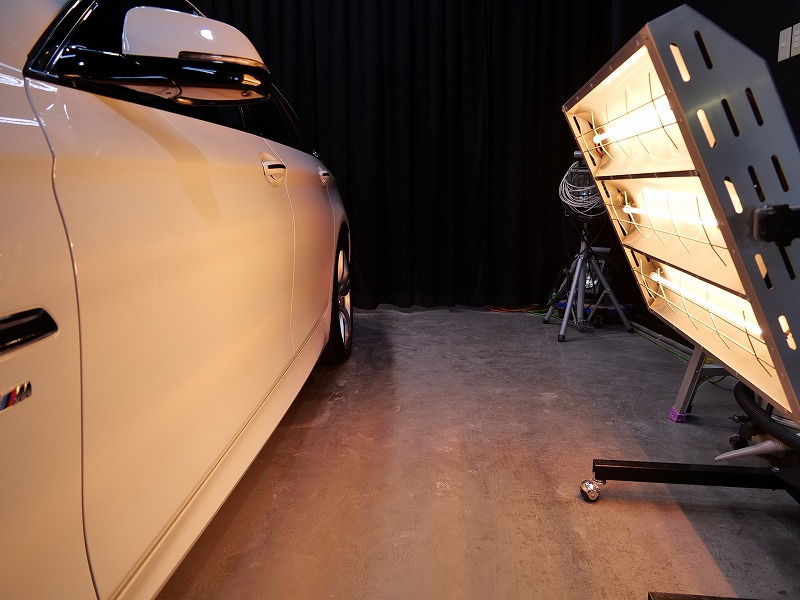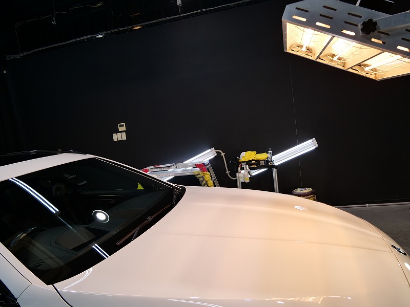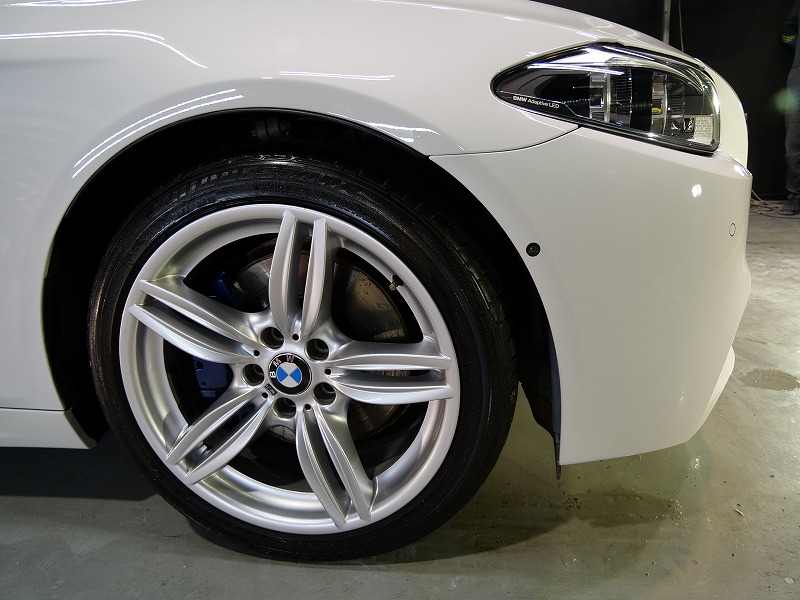 アルピンホワイト(ソリッド)施工はボディには完全無機質のクォーツ(親水性)/ホイールコーティング