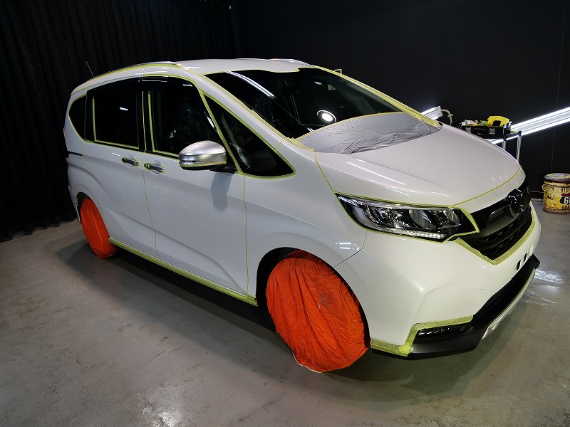 大阪府枚方市よりホンダフリードのご入庫です!ボディカラーはプラチナホワイトパール!施工はボディには