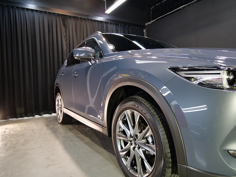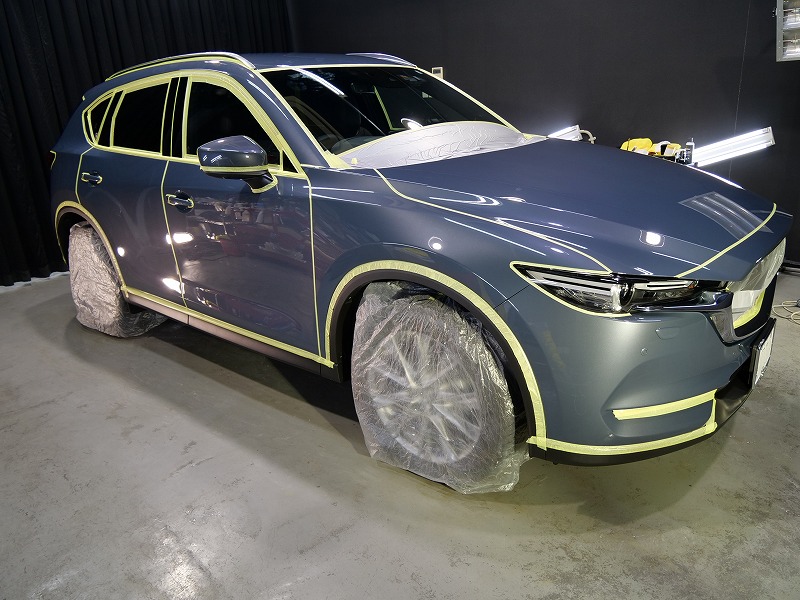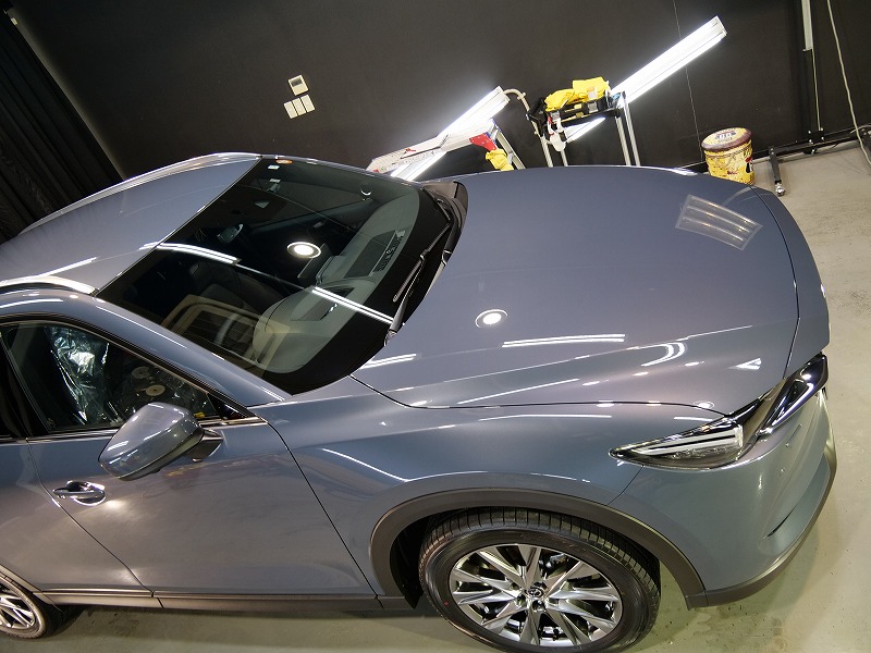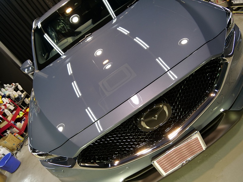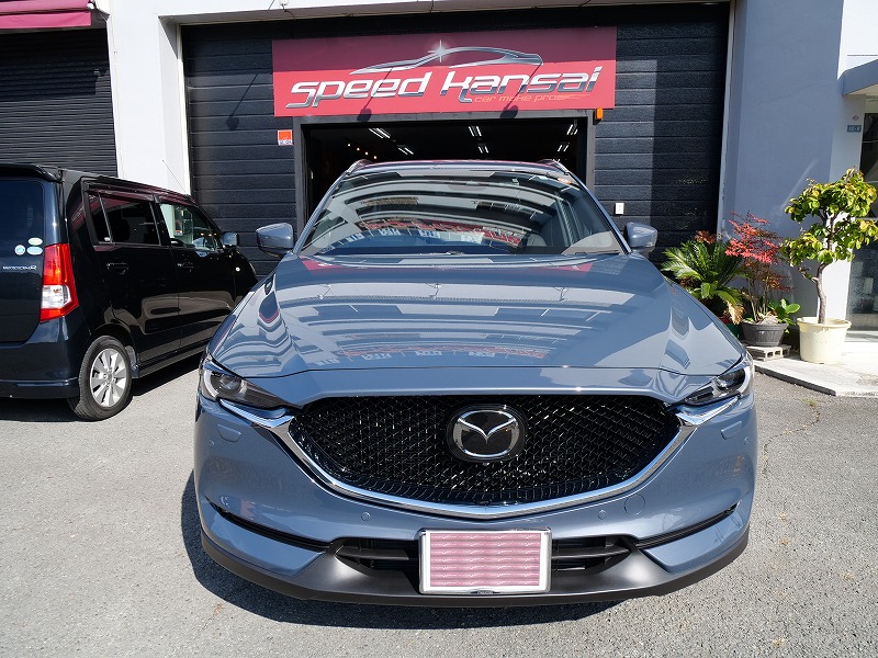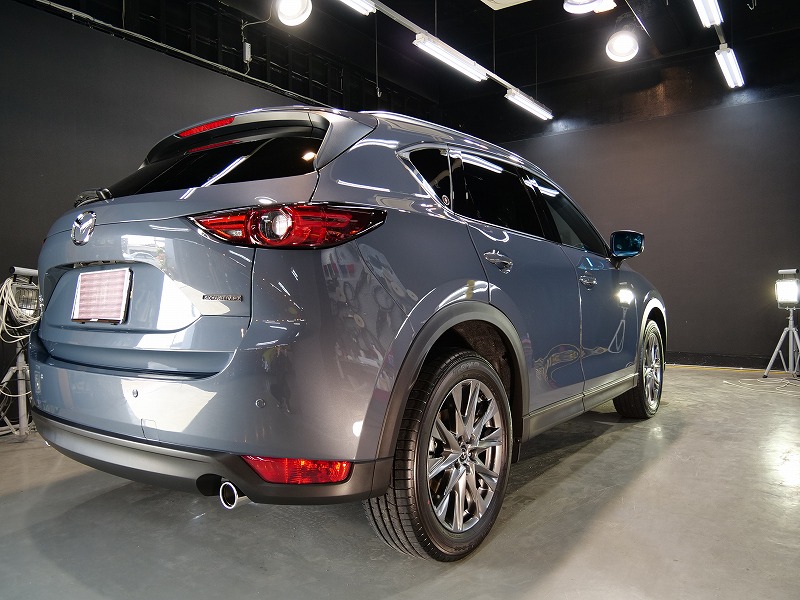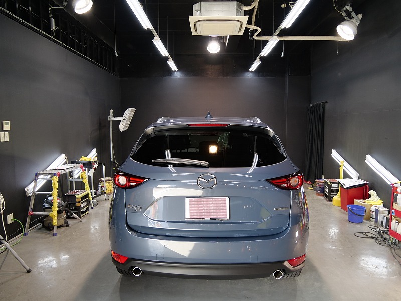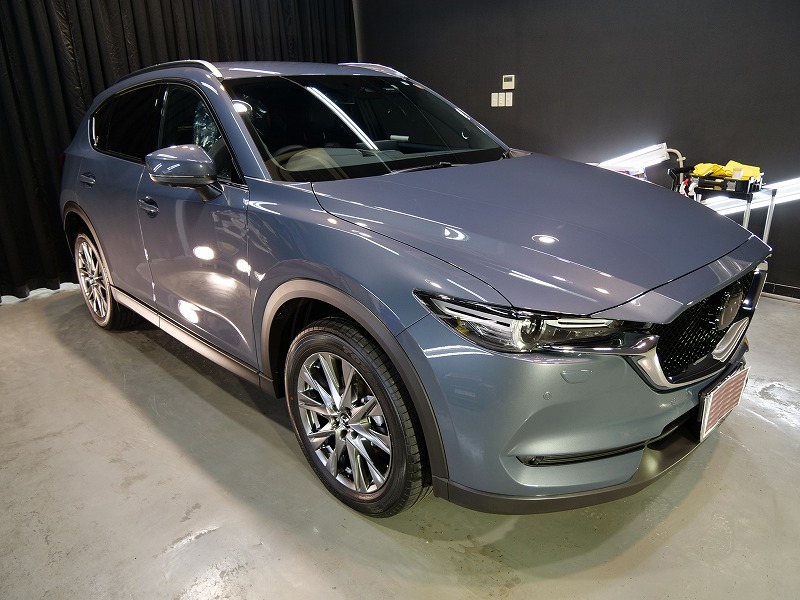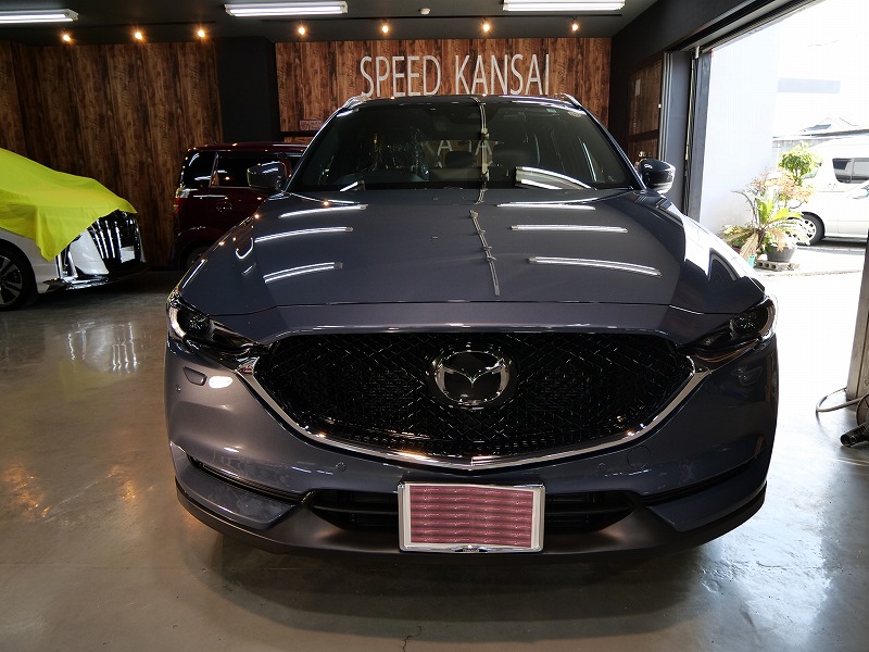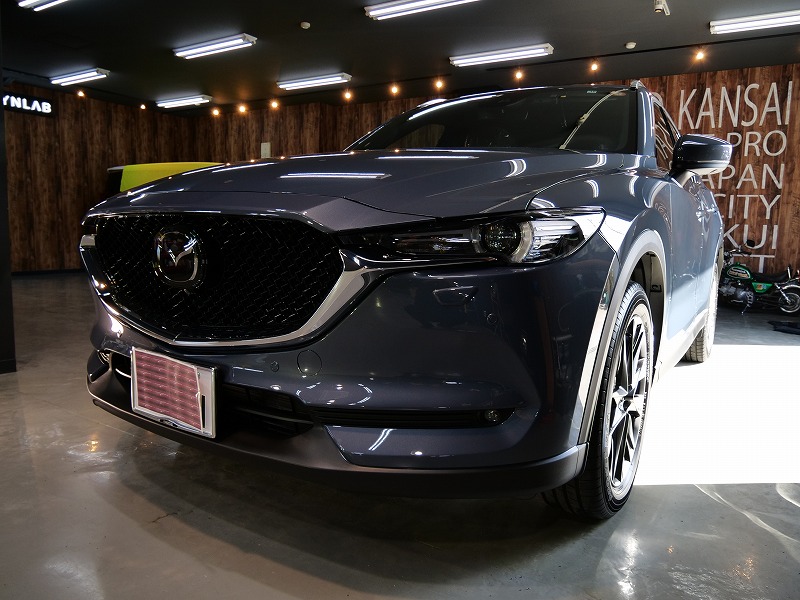 大阪市よりマツダCX-5のご入庫です!ボディカラーはポリメタルグレー!施工はボディには完全無機質の