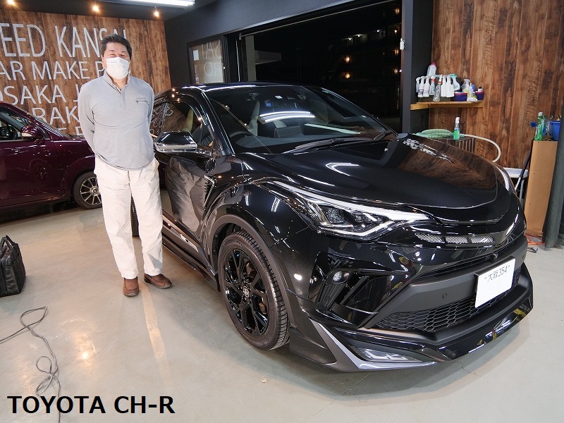 大阪府茨木市より当店のリピーター様がトヨタCH-Rをお持ち下さいました!ボディカラーはブラックマイカ!