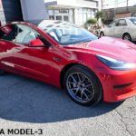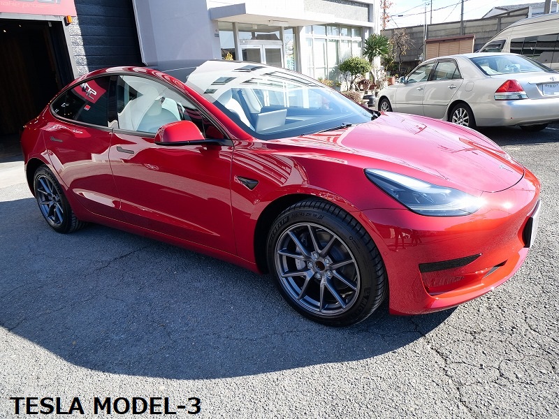 大阪府箕面市より人気のテスラ モデル3のご入庫です!ボディカラーはレッドマルチコート!施工はボディ