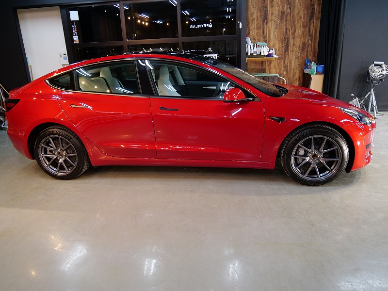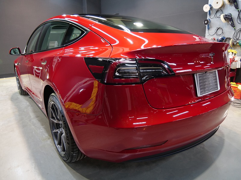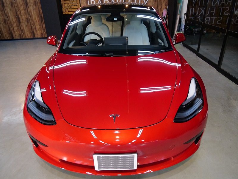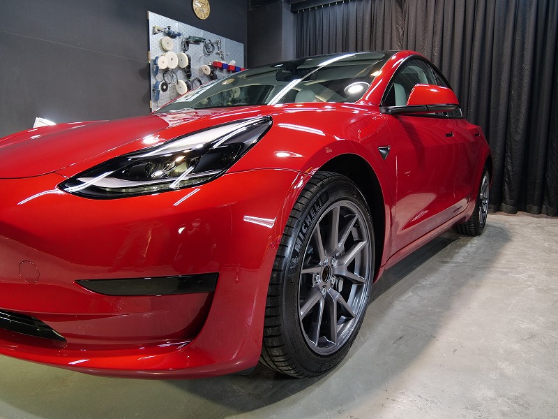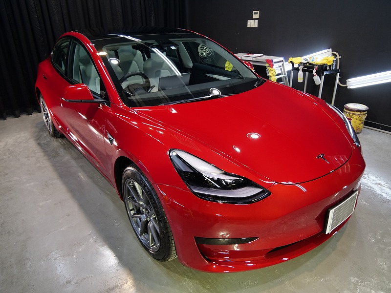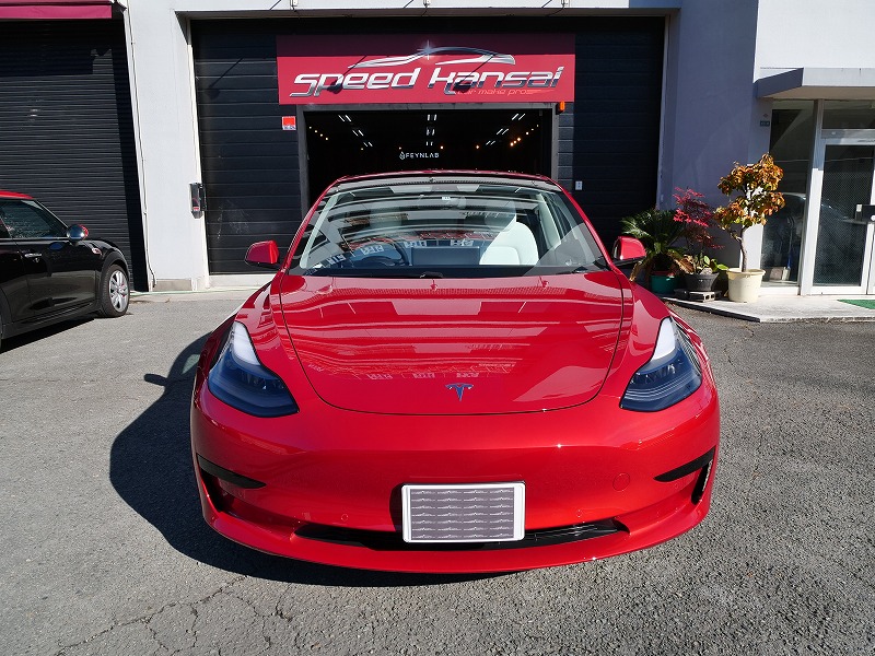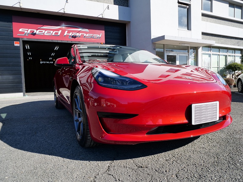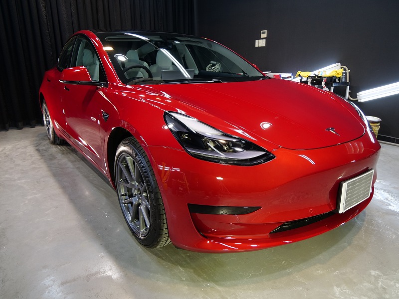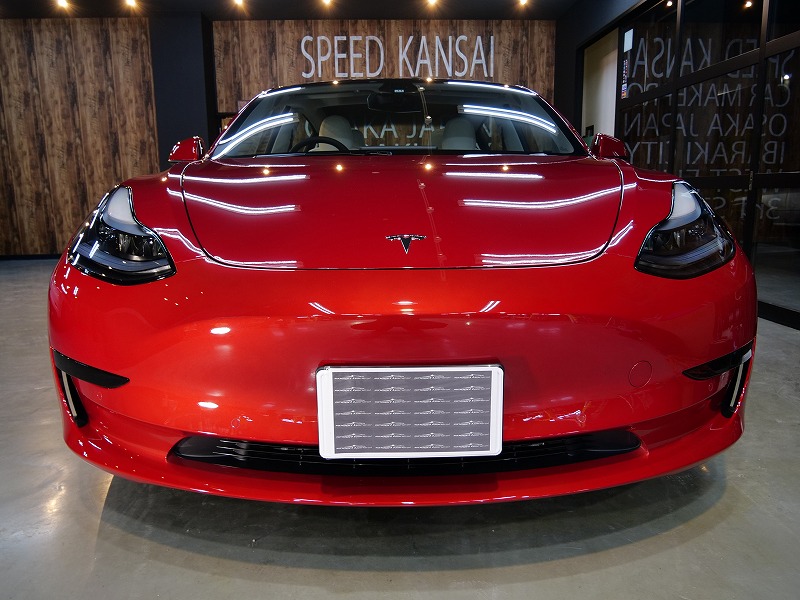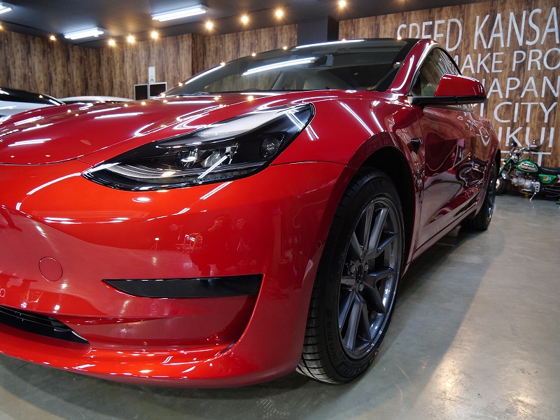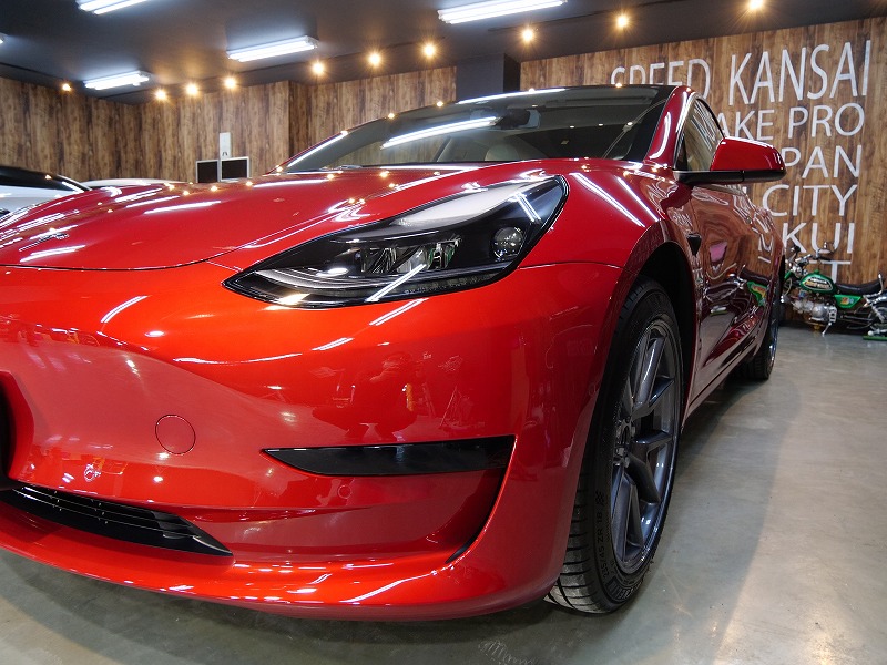 大阪府箕面市より人気のテスラ モデル3のご入庫です!ボディカラーはレッドマルチコート!施工はボディ